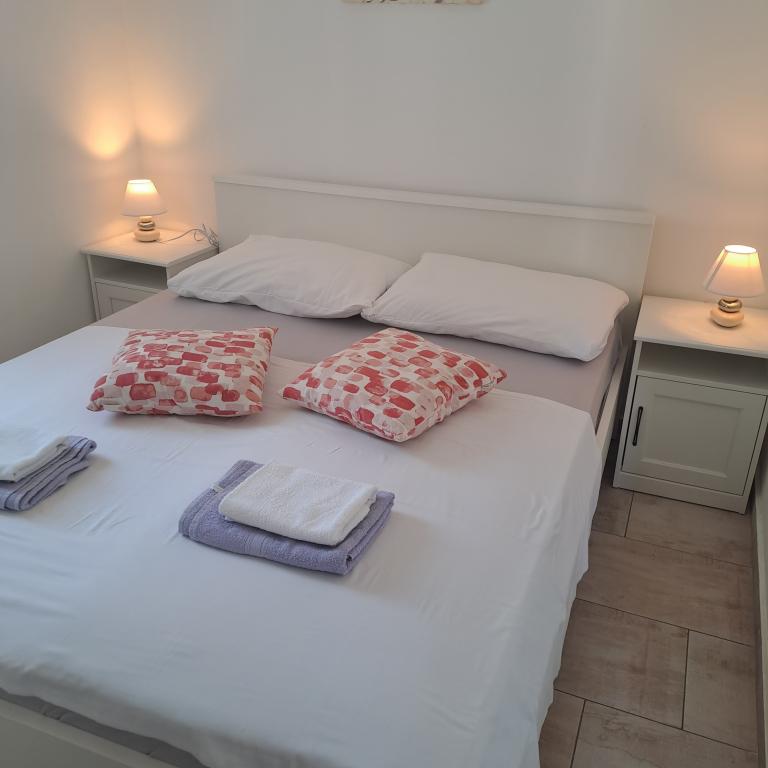 Apartmány Mila-Casa Bianca se nacházejí v klidné části Medulinu, pouhých 900 m od centra, 500 m od nejbližší pláže Bijelica, a nabízejí ubytování s bezplatným Wi-Fi, grilem k dispozici a zabezpečeným parkováním pro vaše auto. Objekt se nachází 10 minut chůze od moře (po cestě vedoucí borovým lesem) na pláž Bijeca nebo Belvedere a centrum Medulinu je 5-10 minut chůze (ulice jsou jednosměrné, takže na mapě to vypadá dále)... Medulin jako turistické letovisko nabízí kromě krásných pláží i další služby pro zábavu a společenské aktivity, jako je ranč s koňmi (veškeré informace na internetu), sportovní lety letadlem a balonem, potápěčský klub, cyklistické stezky po celém Medulinu a okolí, výlety lodí, krásné promenády s veselými akcemi a konzumací jídla a pití pod širým nebem a bohatou nabídku istrijského pršutu, vína, olivového oleje a veškerého bohatství a hojnosti naší Istrie...