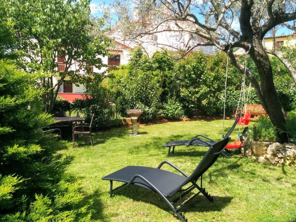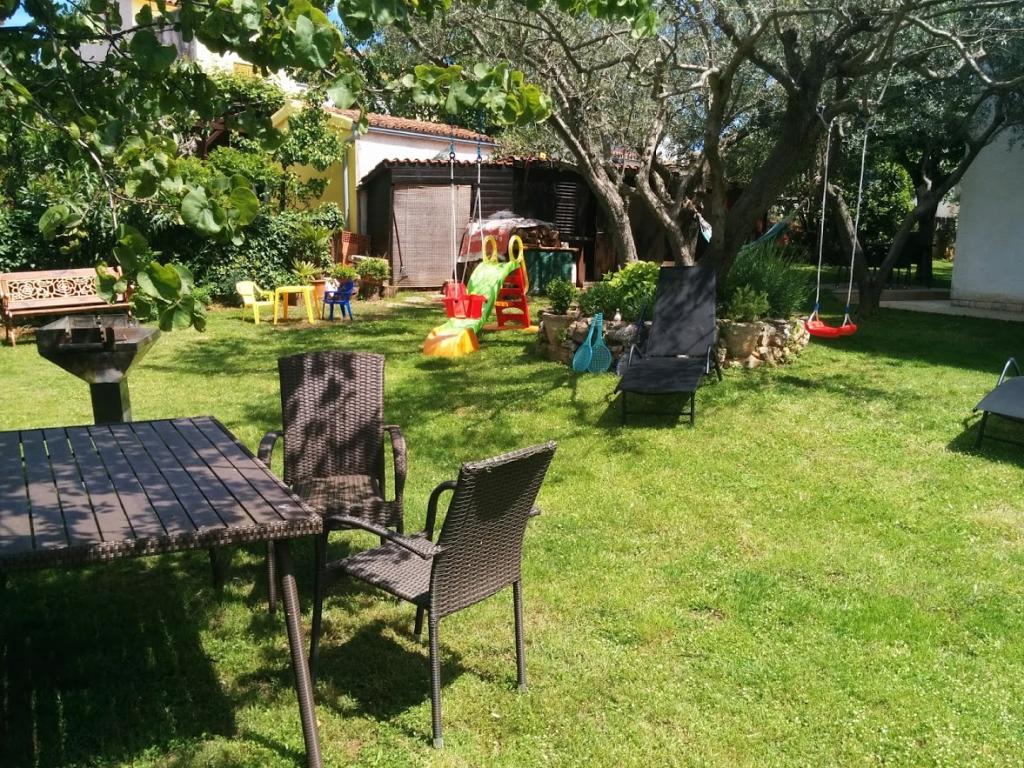 Dům se nachází v klidné části Medulinu, 250-300m od pláže, s velkou zahradou, soukromým parkovištěm. K pronájmu jsou 4 apartmány, plně a moderně vybavené. 2 apartmány se nacházejí v přízemí. Apartmán č. 1 se 2 ložnicemi, kuchyní, obývacím pokojem, koupelnou a terasou. Apartmán č. 2 s 1 ložnicí, kuchyní, koupelnou a zahradní terasou. Ve 2. patře se nachází apartmán č. 3 se 2 ložnicemi, kuchyní, obývacím pokojem, koupelnou a balkonem. Apartmán č. 4 s 1 ložnicí, kuchyní s obývacím pokojem, koupelnou a balkonem. Všechny apartmány mají klimatizaci, bezdrátové připojení k internetu, satelitní TV. Cena zahrnuje ložní prádlo, ručníky, pobytovou daň, registraci. Každý apartmán má vlastní parkovací místo, zahradu a k dispozici přenosný gril. Pronájem pračky 5 eur, přistýlka 10 eur. Parkování a dvůr jsou pod video dohledem.