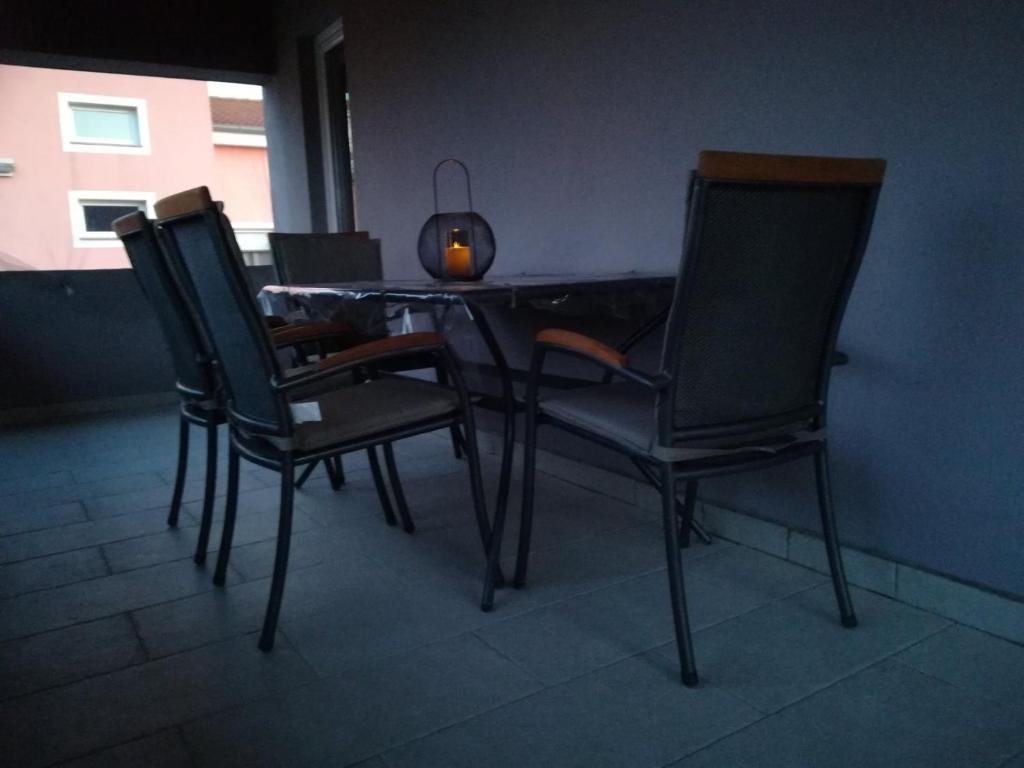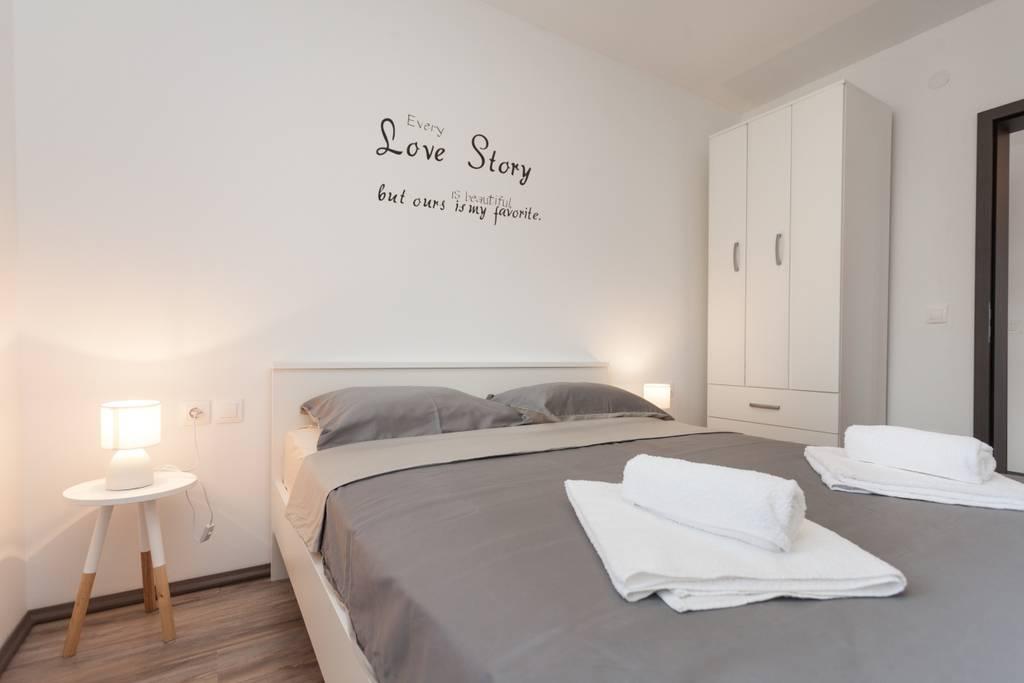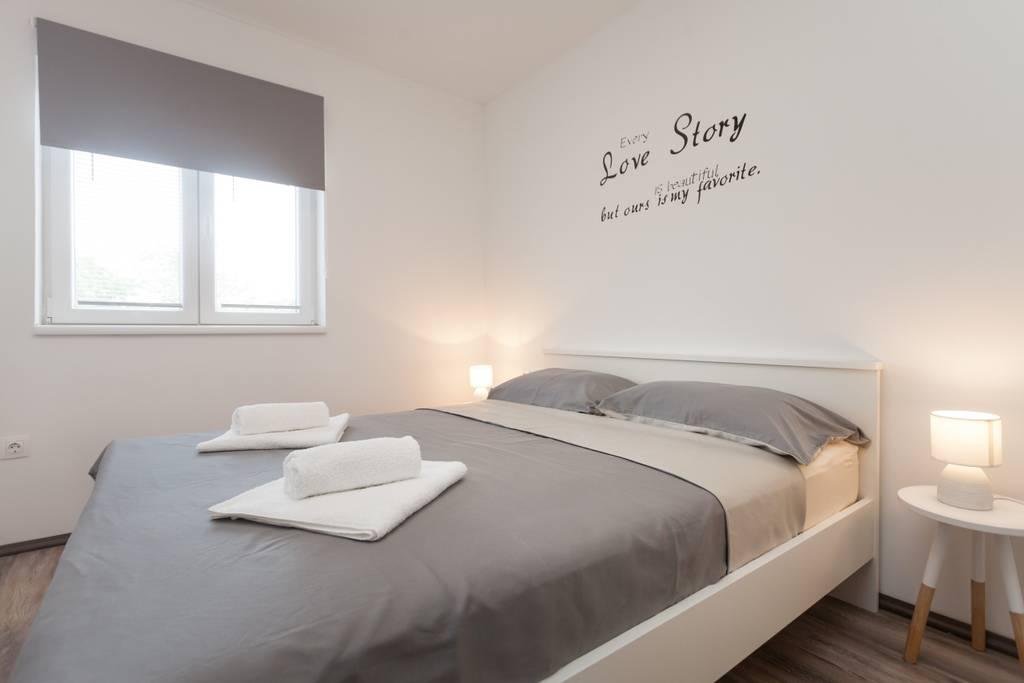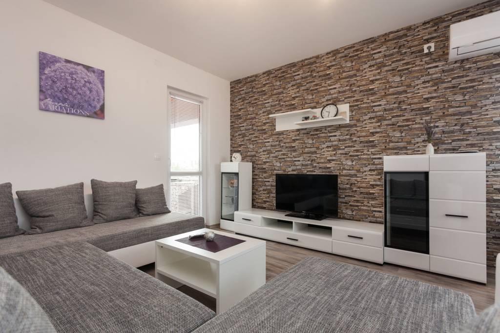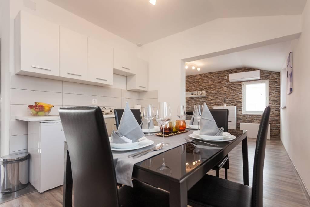 Nově zařízený byt v klidné části Medulinu. Nachází se 800 metrů od pláže a 1,5 km od centra Medulinu. K dispozici je internet, parkoviště, klimatizace, pračka, TV, gril, trampolína.