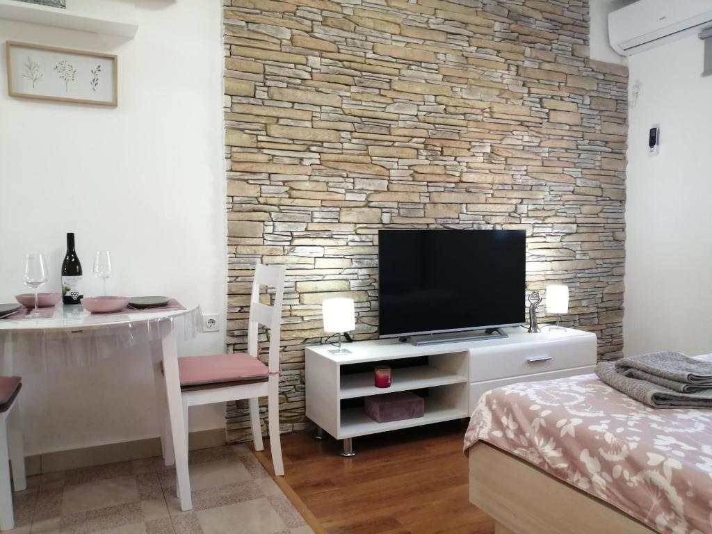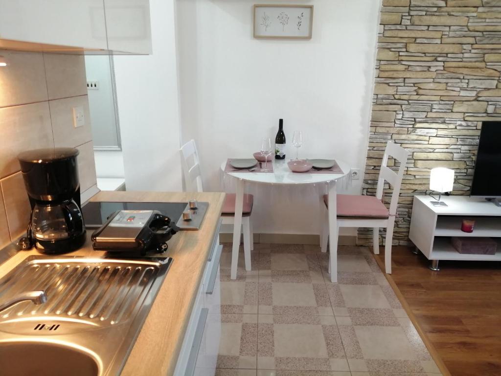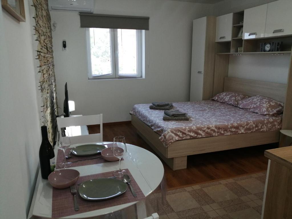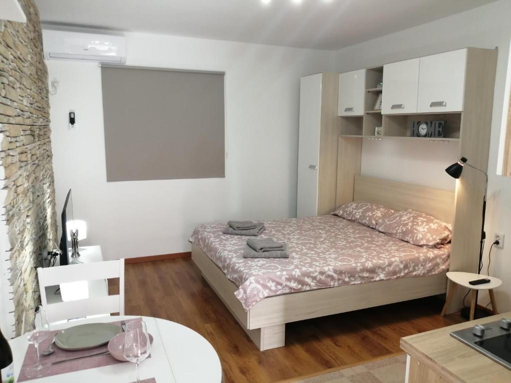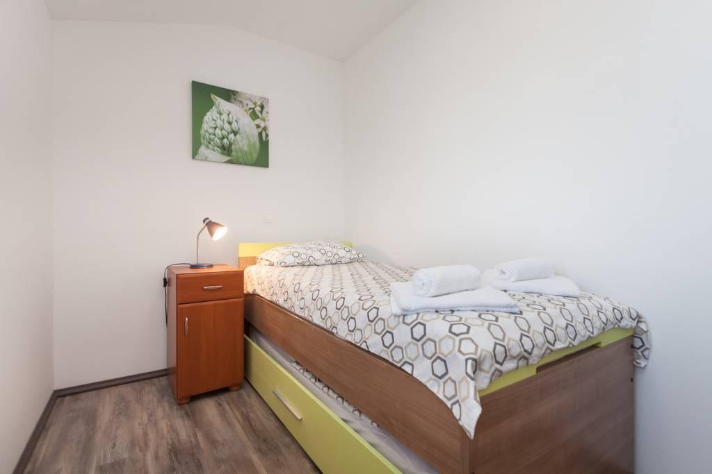 Nově zařízený byt v klidné části Medulinu. Nachází se 800 metrů od pláže a 1,5 km od centra Medulinu. K dispozici je internet, parkoviště, klimatizace, pračka, TV, gril, trampolína.