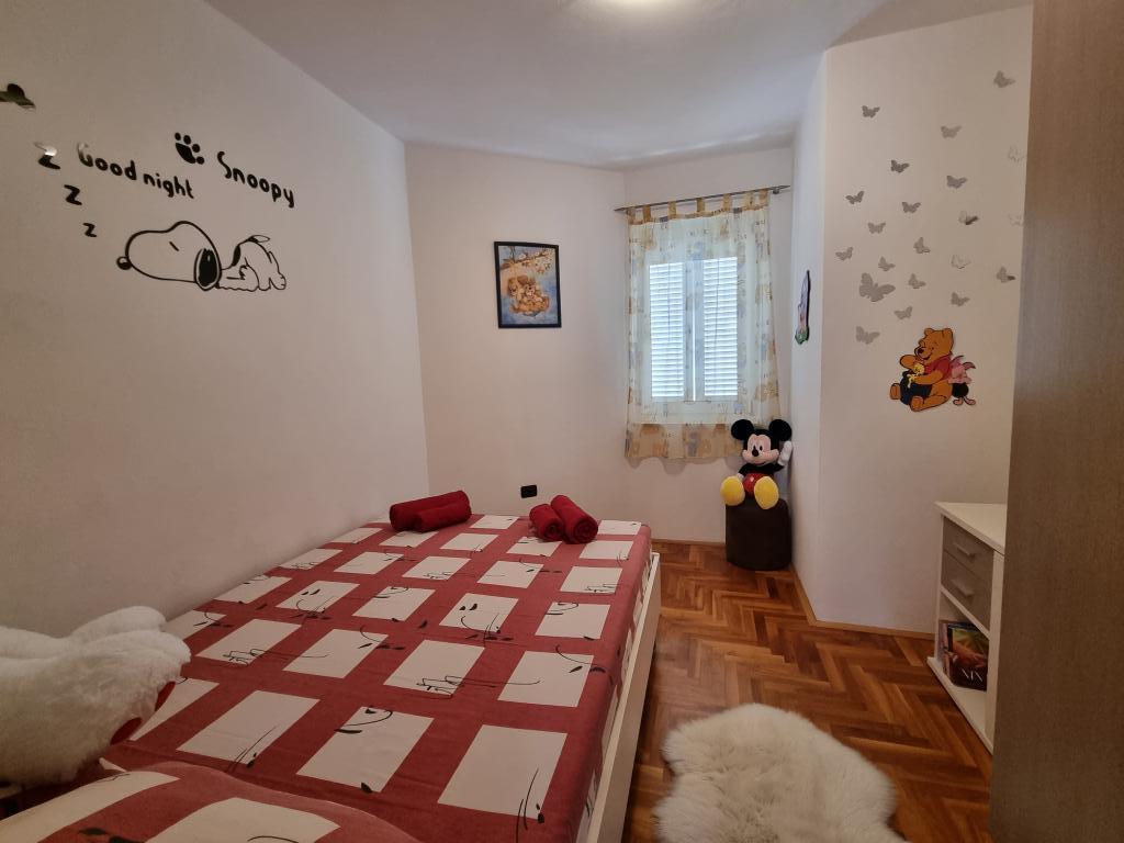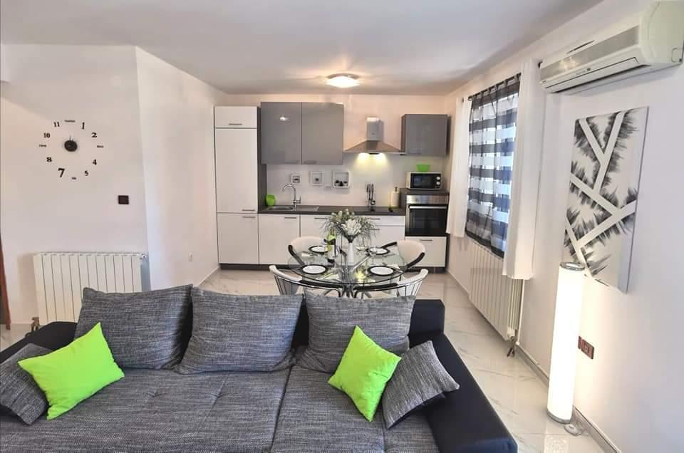 Přečtěte si více Ubytovací jednotkySamostatný check-in a self check-out. Kód klíče je zaslán den před příjezdem. Check in od 16:00 hod. (pokud je apartmán volný dříve) Check out do 10:00 hod. Platba v hotovosti nebo na náš bankovní účet. Veškeré detaily zasíláme po dohodě na mob (WhatsUp nebo Viber nebo SMS) nebo e-mailem. V apartmánu je k dispozici ložní prádlo a ručníky. Při rezervaci se platí 20 % z částky rezervace. V ceně není zahrnuta pobytová taxa 2Eur/os./den. Závěrečný úklid 85Eur není zahrnut v ceně. Dětská postýlka na vyžádání 20 Eur. Na vyžádání je k dispozici vysoká stolička pro děti. Na vyžádání jsou k dispozici kočárky.