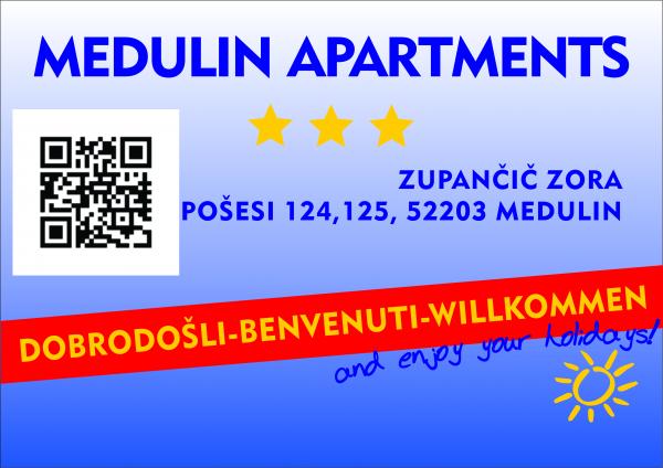 Chcete zažít pěknou a klidnou dovolenou s rodinou? S námi je to možné! Naše apartmány se nacházejí v osadě Pošesi v Medulinu. Všechny jsou klimatizované a vybavené novým nábytkem a vybavením. Centrum Medulinu je pár minut snadné chůze podél pobřeží. Vedle objektu jsou dvě ohniště s grilem, které mohou hosté volně využívat. Parkoviště je přímo u budovy. V apartmánech je zavedena bezplatná wifi. Byt má výhled na moře. Snažíme se, aby naši hosté byli vždy spokojeni, proto se k nám pravidelně vracejí. Všem stálým i novým, budoucím hostům doporučujeme provést rezervaci předem, protože v samotné sezóně je obtížné najít volné místo a požadovaný termín.