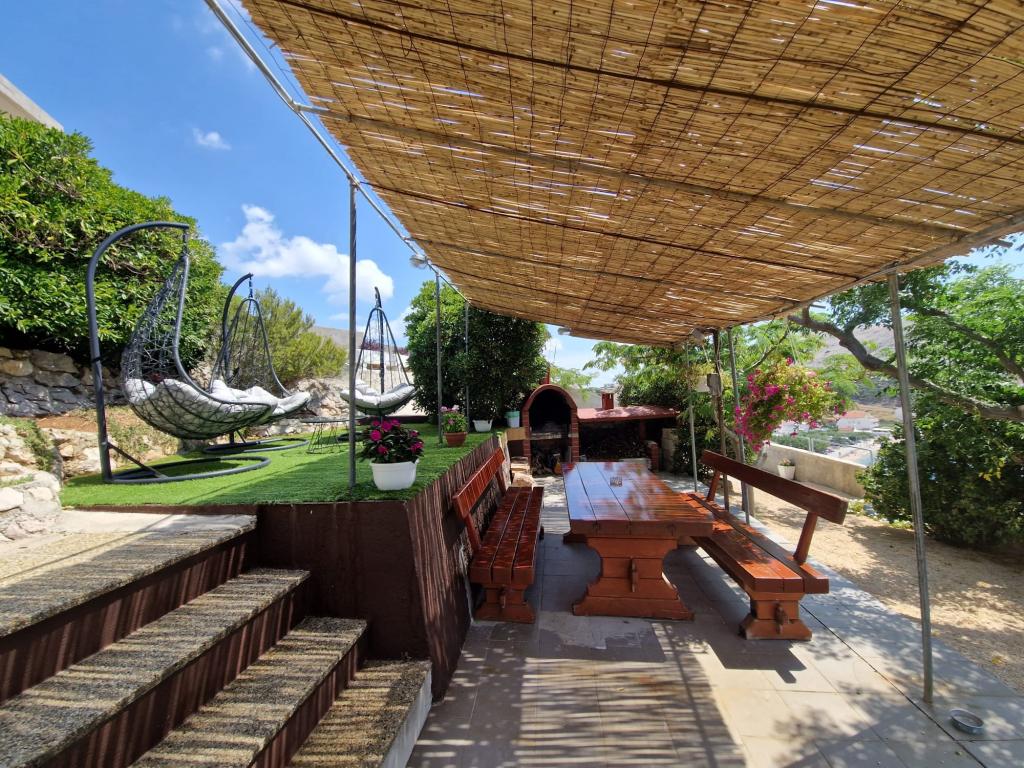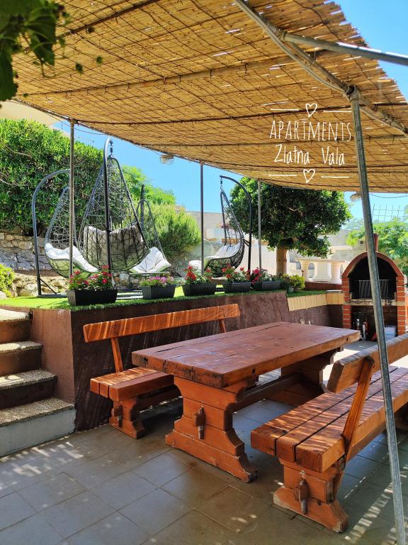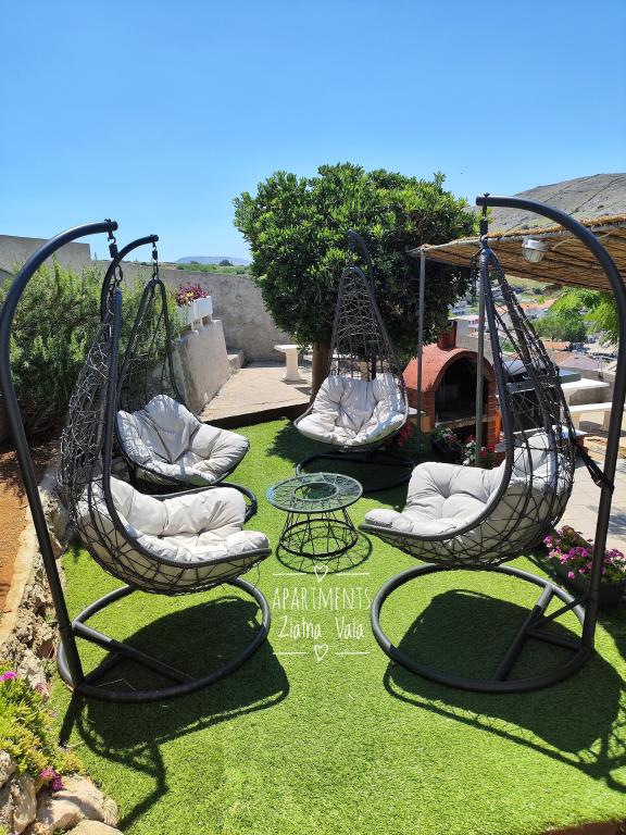 Apartmány Bingula se nacházejí na malém kopci zvané Glavica, 150 metrů od moře a centra města Metajna. Blízkost centra a moře umožňuje našim hostům v krátké době uprostřed událostí a také ustoupit do míru, který náš web nabízí. Pro naše hosty je několik teras s běžným grilem a pro nejmenší hosty máme malé hřiště tak, aby rodiče mohli neomezeně odpočívat. Všechny apartmány jsou plně a moderně vybaveny: kuchyň s obývacím pokojem, koupelna s WC, klimatizace, SAT TV, WLAN, balkon s výhledem na moře .... Pro ty, kteří se rozhodnou pro polopenzi, nabízíme chorvatské speciality a mezinárodní speciality s chorvatským perníkem. Pokud něco zapomenete, vždy jsou vaši hostitelé, kteří rádi přijdou a setkáme se s vámi. Těšíme se na váš příjezd, Rodinná bingula