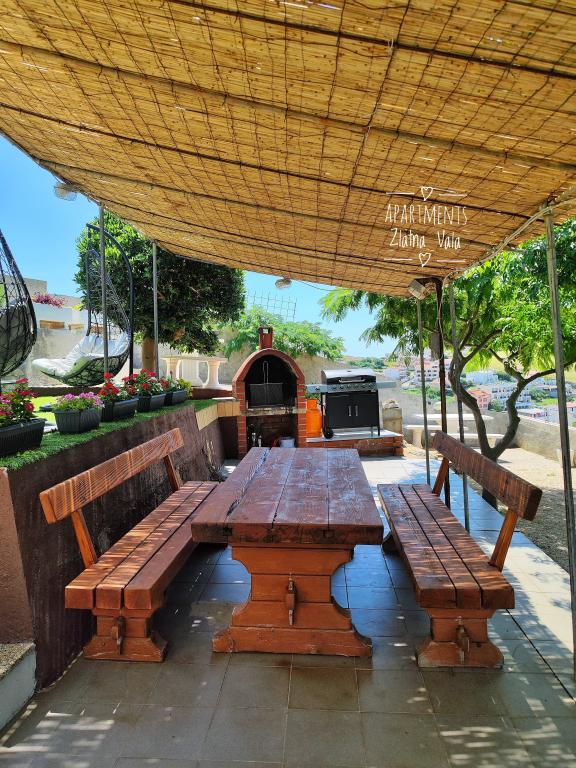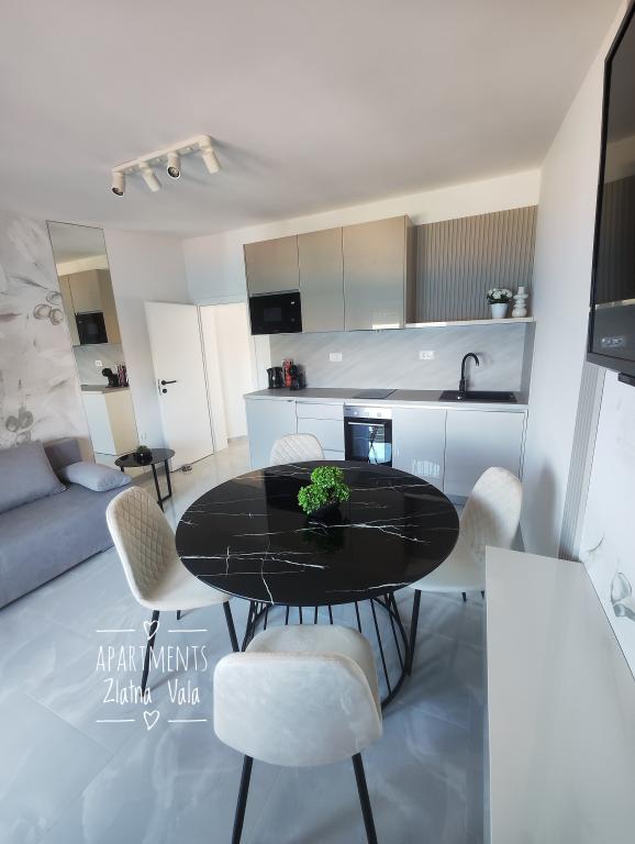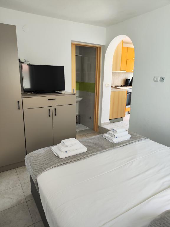Do Chorvatska jezdíme na dovolenou už několik let. Obvykle během jedné dovolené vyzkoušíme několik různých ubytování a musíme říct, že tohle byl zatím náš nejlepší apartmán! Apartmán nabízí dostatek prostoru pro čtyřčlennou rodinu – cítili jsme se v něm velmi pohodlně. Je moderně zařízený, působí luxusním dojmem, je extrémně čistý (vypadal téměř jako nový) a má balkon s úchvatným výhledem na hlavní pláž a celou zátoku Metajna, kde jsme si téměř každý večer užívali západ slunce. Apartmán je skvěle vybaven. Kromě užitečných spotřebičů, jako je myčka nádobí, indukční varná deska, klimatizace, Wi-Fi (se silným signálem) atd., je zde také kávovar a tyčový vysavač, což ocení zejména lidé s dětmi. Dostali jsme neomezené množství tablet do myčky a také kávových kapslí. Přímo u apartmánového domu můžete využívat dva typy grilů a relaxovat v houpací síti na terase. Během našeho pobytu nám hostitelé také laskavě zapůjčili své paddleboardy, což nám dalo fantastickou příležitost poprvé si paddleboarding vyzkoušet. Apartmány také nabízejí prostorné parkoviště přímo nad budovou. Všechny tyto detaily přispívají k celkovému pohodlí a skvělému pocitu z pobytu zde. V den našeho příjezdu jsme na stole našli dárkovou tašku s domácími marmeládami, které si připravili sami hostitelé. Bylo to tak milé překvapení. Hostitelé byli od první chvíle velmi příjemní a komunikativní. Bez problémů nám pomohli se vším, co jsme potřebovali, a vždy byli ochotni nám vyjít vstříc. Během našeho pobytu nás hostitelka dvakrát překvapila plným talířem čerstvých palačinek a lahodným dortem. Nejbližší pláž je jen asi 2 minuty chůze ulicemi Metajny – hlavní metajnské pláže. Hned za malým kopcem najdete krásnou pláž Ručica. Doporučuji si tam pronajmout šlapadlo a vydat se na nedalekou pláž Beritnica, s výhledem na úchvatné pískovcové skalní útvary. Při západu slunce jsme si užili procházku po pobřežní stezce „Život na Marsu“, která začíná na konci pláže v Metajně a vede k pláži Ručica. Jak jsem zmínil na začátku této recenze – tento apartmán je zdaleka nejlepší, jaký jsme si v Chorvatsku pronajali. Cítili jsme se zde opravdu jako doma. Doporučuji ho z celého srdce!