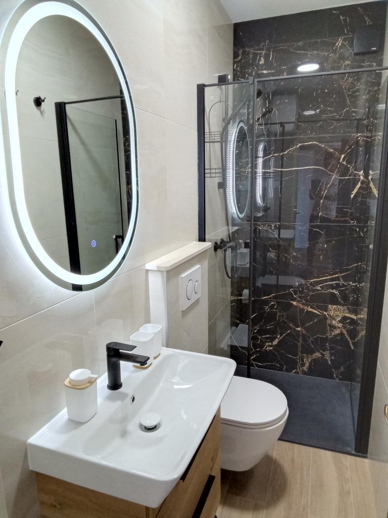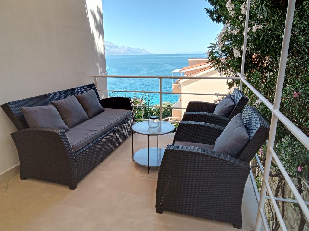 Byt A6 2 má 3 velké ložnice, 3 koupelny, velká kuchyň a velkou terasu. Všechny pokoje mají balkon s výhledem na moře. V kuchyni je plně vybaven, s velkým jídelním stolem v interiéru i exteriéru. Byt A2 2 je pohodlný apartmán s dvěma přistýlkami, koupelna, kuchyň a terasa. Parkování v areálu.