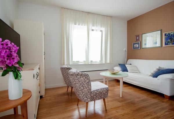Bydlení v Mimicích je perfektní volbou. Je to skvělá základna pro návštěvu dynamičtějších měst a pak se vrátit a odpočinout si od lidí. V bytě nám nic nechybělo, stojím si za svými předchozími komentáři o pohodlí a čistotě bytu (je opravdu čistý, vše velmi uklizené). Kuchyně byla vybavena jako u vás doma, hrnce čisté, nové, udržované (a vzal jsem si s sebou změkčovač masa a vlastní pánve, kdo ví? To není standardní. Byli jsme s manželem a 10letým synem a měli jsme dostatek prostoru, čtyřčlenná rodina zde může pohodlně trávit čas. Výhled z balkonu je krásný. Obchod je kousek od Studenacu, koupit nějaké rohlíky k snídani není problém, vše potřebné koupíte v obchodě. Sejdete po schodech na pláž, po strmém chodníku, cesta zpět může být vyčerpávající, ale výhledy stojí za to. Nejbližší pláž je Juto - pěkná, ale raději jsme jeli o kousek dál do Kutles, obě lehce v dosahu apartmánu. Co se týče parkoviště, jedná se o soukromé místo na straně hlavní silnice, pokud chcete vjet na pozemek (to je druhá možnost), musíte počítat s velmi prudkým klesáním, ne každé auto bude schopen to udělat. Můj manžel nechtěl obtěžovat spojku tak jsme si vybrali místo na kraji silnice a musím říct, že to bylo v pohodě - nutilo nás to jít ven a udělat si nějakou prohlídku, protože opuštění parkoviště bylo jednodušší než obvykle. Celkově vzato to byl náš nejlepší výlet do Chorvatska. Upřímně doporučuji byt.