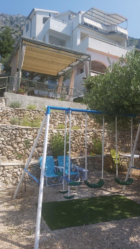 Apartmány se nachází v klidné oblasti. Dobře vybavené apartmány. Na pozemku je vyhrazený gril a místo k odpočinku na lehátkách. Rostou zde také olivovníky a fíkovníky. K plážím se dostanete klidnou chůzí asi 10 minut, klesání je poměrně strmé, v blízkosti je obchod s potravinami, pošta, stánek se zeleninou. Hostitelé byli velmi přátelští, dětem nám dali fíky a palačinky. Na příjezdu v lednici, Čekala na nás láhev vychlazené vody a místní pivo. V den odjezdu nám pan Ibrahim předal dárky v podobě louskáčka na ořechy, sáčku se sušenými bylinkami a děti dostaly od pana hostitele knihu. Doporučuji ubytování u pana Ibrahima a jeho manželky, jako místo pro klidnou dovolenou a základnu pro výlety do měst Split, Omiš nebo na Makarskou riviéru.