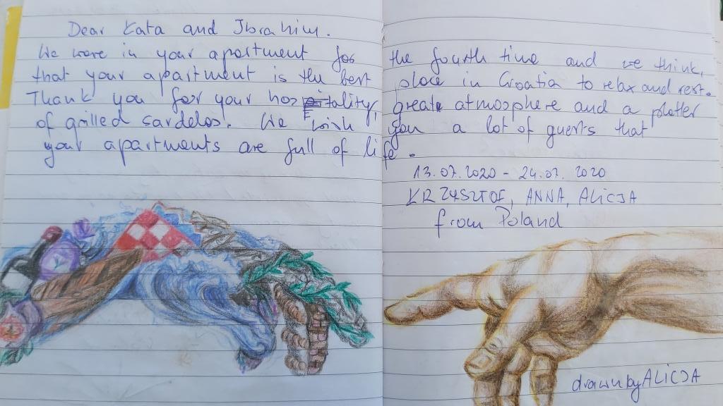 Strávili jsme 10 dní v bytě s dětmi. Byla to skvělá dovolená, všichni si to opravdu užili. Dům se nachází v klidné oblasti, obklopen velkou zahradou. Na pláž je to 10 minut pěšky. Cesta je trochu strmá, protože dům stojí na svahu, ale na oplátku vše vykompenzuje výhled z terasy. K dispozici jsou také skvělé výlety ve směru na starou vesnici a na horu. Také s nádherným panoramatem. Byt je útulný, čistý a dobře vybavený, má vše, co zajišťuje pohodlný pobyt. Naši hostitelé jsou nekonečně milí a nápomocní, děkujeme za nezapomenutelnou dovolenou!