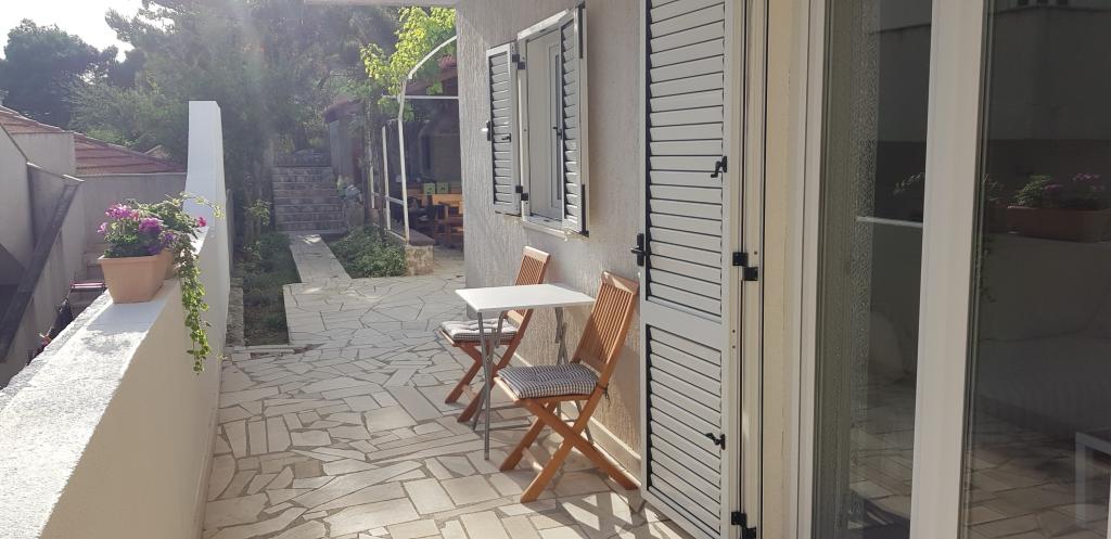 Dům se nachází v Mimice za Omiše. K dispozici jsou tři apartmány, jeden v přízemí a dva v patře. Plně vybavená. V přízemí má zahradu, a nahoru na balkon. 30m od pláže. Ideální pro domácí, bez hluku, oáza klidu a míru. Doporučení pro rodiny s dětmi a páry, kteří potřebují klid. Pro mladé lidi, kteří mají potřebné vybavení (diskotéky, noční klub atd. ...), které lze najít v nedalekých městech Omiš, 10 min jízdy a Makarska je 20 minut, a pak se vrátit do klidu. Na zahradě je gril, stoly a lavičky ve stínu, ideální pro relaxaci a socializaci. Všechny apartmány mají TV, Internet, TV, plně vybavená, koupelna, jídelna, obývací pokoj, ložnici a balkon nebo terasu. Dvě klimatizační zařízení v každém apartmánu.
