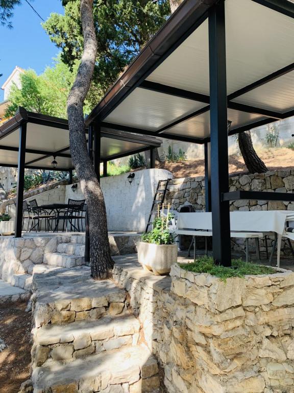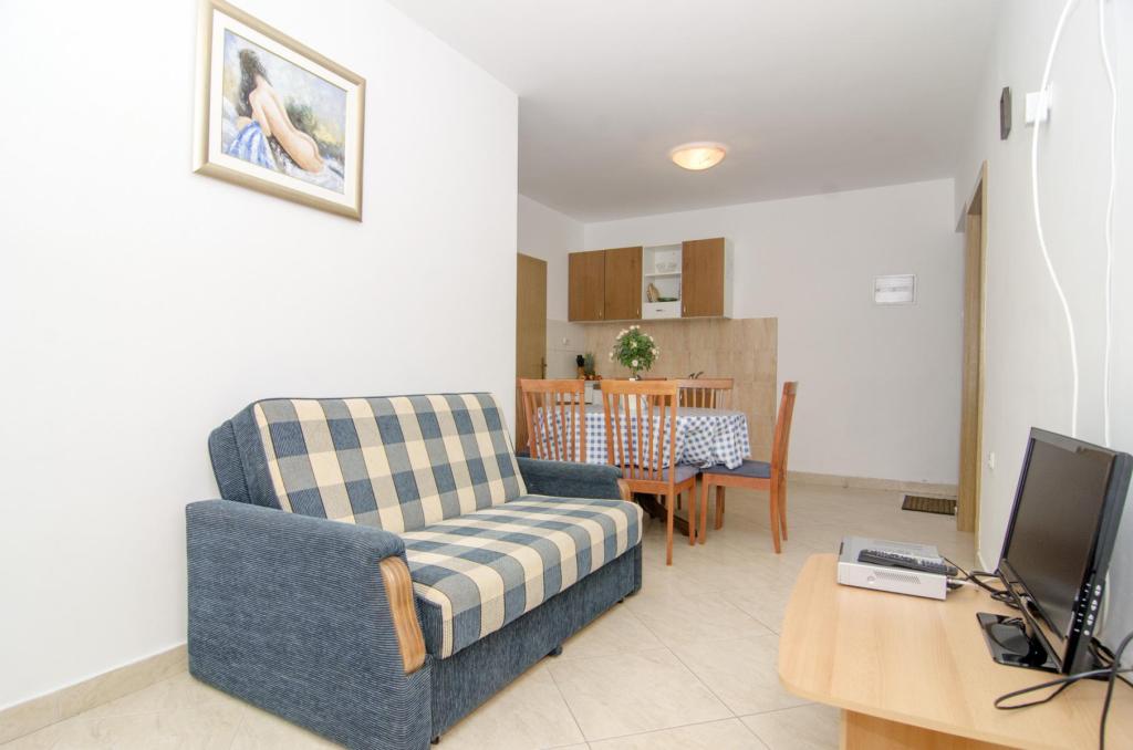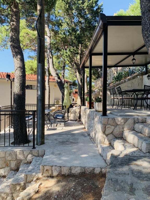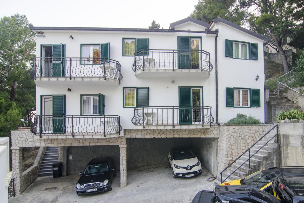 Krásná lokalita 30 m od moře. Apartmány jsou obklopeny borovým lesem a uvnitř budovy jsou společné terasy s grilem, které mohou hosté využívat. Každý apartmán má vlastní balkon s výhledem na moře. Plně vybavené, klimatizace, internet, parkování ve vlastní garáži.