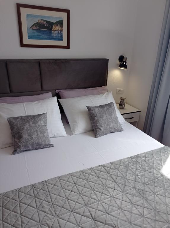 A4 superior - nový, moderní apartmán ve 2. patře domu s krásným výhledem na moře, ostrovy a město. Kapacita 2+2. Plně vybavené a klimatizované v každém pokoji. A4+2 superior - nový, moderní byt ve 2. patře. Dvě ložnice, dvě koupelny, kuchyň, jídelna, obývací pokoj a velká terasa s výhledem na moře a ostrovy. Klimatizace v každém pokoji. A4+4 - velký a prostorný byt v 1. patře domu. Plně vybavené a klimatizované v každém pokoji. Skládá se ze dvou velkých ložnic (s koupelnami), obývacího pokoje, kuchyně, jídelny, tří koupelen, terasy a balkonu s nádherným výhledem na moře a ostrovy. A4+1 - byt v přízemí. Skládá se ze dvou prostorných ložnic, koupelny a kuchyně s jídelnou. Z velké terasy, která je v přírodním stínu, je výhled na moře a ostrovy. A2+2 - byt v přízemí, s terasou. Skládá se z ložnice, koupelny, haly, kuchyně a jídelny s postelí. Klimatizované. Výhled na moře.