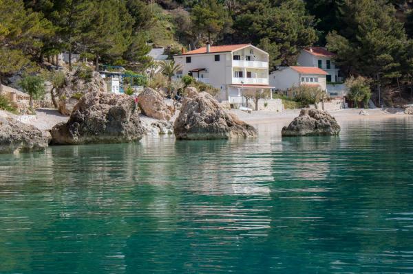 Krásné místo pro dovolenou. Poloha apartmánu je super, hned jen pár kroků od pláže. Apartmán má 2 balkony, z nichž je nádherný okouzlující výhled a můžete poslouchat šum moře. Moře je křišťálově čisté. V moři malé kamínky, kousek dále i písek. Vybavení apartmánu je na dobré úrovni, měli jsme vše, co jsme potřebovali. Majitelé jsou skvělí lidé. Komunikovali s námi během celého pobytu, jestli něco nepotřebujeme. Byli jsme 2 rodiny, tříčlenná a dvoučlenná, což nám vyhovovalo rozložením dvou pokojů. Jedna koupelna nám postačovala. Před vchodem do apartmánu je velká terasa is grilem. Mohli jsme tam bez problémů nechat také nafukovačky a paddleboard. Skvělá restaurace "Val" byla hned na dosah. Také kavárnička nad útesem je super. Z útesu lze skákat do moře. Pár dní jsme měli také krásně velké vlny. Ve městě je jen jedna prodejna potravin, ke které je třeba vyšlapat po schodech na hlavní cestu. Ale byli jsme autem, tak jsme si udělali dvakrát větší nákup, abychom nemuseli chodit každý den. Ale lepší je nakupovat například. v Omiši nebo v Bašce vodě, když pojedete někam na výlet. Na toto nádherné místo budeme vzpomínat. Je to místo pro odpočinek, je zde klid, málo lidí a určitě se sem vrátíme.