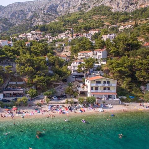 Začnu tím, že doporučuji. Po příjezdu připravené chlazené nápoje. Apartmán A5 +1, kde jsme byli ubytování byl čistý, dobře vybavený, klima , wifi a td. Balkony jsou situované směrem k moři. Výměna prádla samozřejmostí. K moři je to co by kamenem dohodil, lehátka k apartmánu jsou v ceně. Klidné domácí prostředí. V blízkosti je nádherná restaurace, kde grilují úžasné ryby. Pro vyznavače adrenalinu je možno na řece Cetina u Omiše cca 11 km, svést se na raftu a laně ZIP LINE. Domácí jsou milý a ochotní lidé, kteří nás na závěr pobytu pozvali na večeři a věnovali se nám po celou dobu pobytu. BYLI JSME SPOKOJENI A BUDEME SE VRACET!!!!