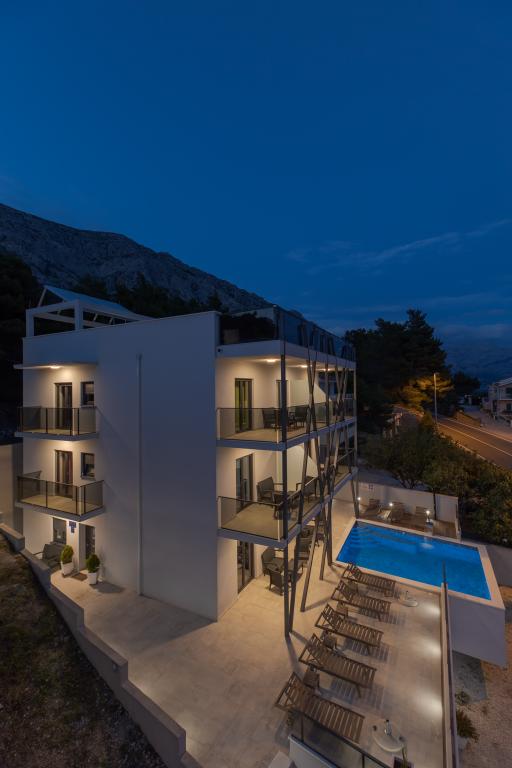 Apartmánový dům v Medići-Mimice nabízí krásné a moderní prázdninové apartmány. Apartmány jsou dobře a funkčně vybaveny pro příjemný pobyt a dovolenou. Samotné místo je známé svými krásnými a oblázkovými plážemi, které jsou jen pár minut od domu. Mimice/Medići je typické malé středomořské místo s mírným klimatem, které se nachází na úpatí svahů Omiška Dinara, v srdci Dalmácie, 12 km od města Omiš a 23 km od města Makarska. V oblasti je mnoho pláží a zátok, kde si každý najde svůj skrytý kout. Pro ty, kteří hledají zábavu a aktivní dovolenou, blízkost Omiše a Makarské (pouze 20 minut cesty) zaručuje nezapomenutelný čas v jednom z četných nočních klubů na Makarské riviéře nebo poznávání bohaté nabídky aktivní turistiky v nedalekém Omiši.