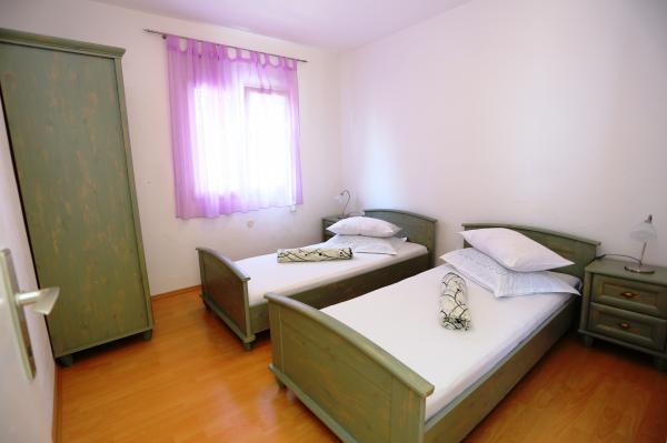 Apartmány jsou moderně vybavené, mají vše, co potřebujete k příjemnému pobytu. Každý apartmán má samostatný vchod. Dvůr je velký, takže je vhodný pro venkovní posezení a grilování. Pláž je vzdálená 50 metrů. Má speciální venkovní sanitární jednotku vedle grilu a pračku, kterou mohou používat všichni hosté apartmánu. Centrum a veškerá důležitá občanská vybavenost je cca 200 metrů od apartmánu.