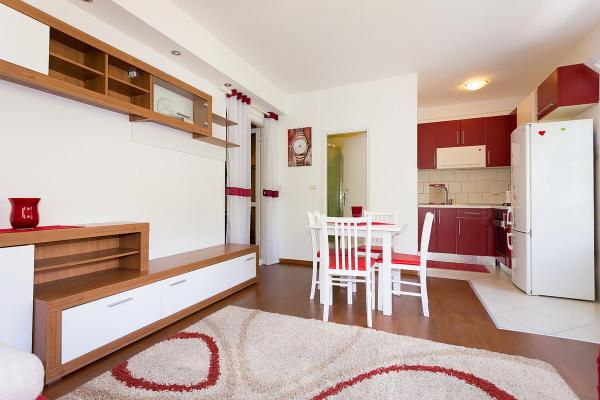 Byt byl čistý. Pohled z balkonu byl fantastický, je ideálním místem pro snídani nebo večeři. Majitelé jsou velmi milí a ochota. Máme chutné koláče a ovoce Almast každý den od vlastníků. Doporučil bych tento byt pro každého mít pěknou dovolenou v Dalmácii.
