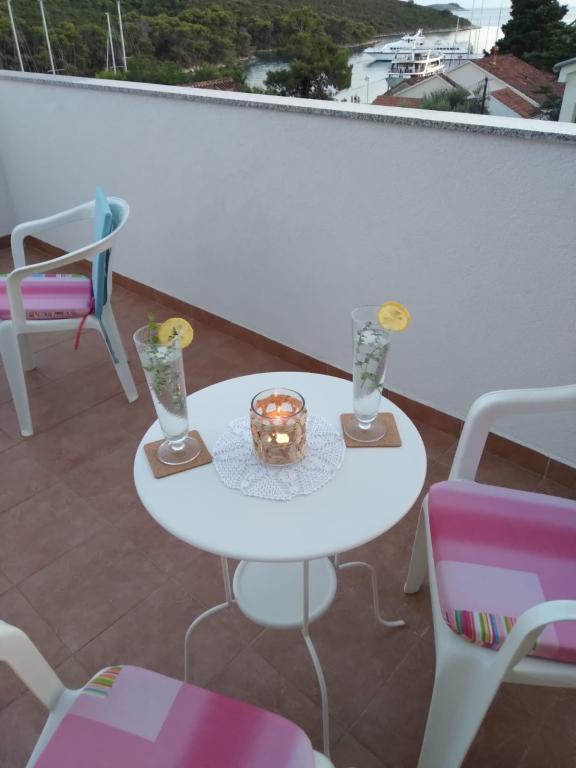 Studiové apartmány Bonaca se nacházejí v bezprostřední blízkosti přístavu, druhá řada k moři, v klidné oblasti s výhledem na moře. Apartmány jsou ideální pro páry nebo přátele. Oba apartmány mají společnou terasu. Apartmány jsou klimatizované a mají bezplatné Wi-Fi. Apartmány se nacházejí 2 minuty chůze od přístavu. Nedaleko se nachází kavárna, 2 restaurace a pizzerie, stejně jako malý kiosek s ovocem a zeleninou. Je to 10 minut chůze do centra města a na pláž. Každý apartmán může ubytovat 2 osoby. Nevhodné pro malé děti. Neakceptujeme domácí mazlíčky. Minimální délka pobytu je 7 dní.