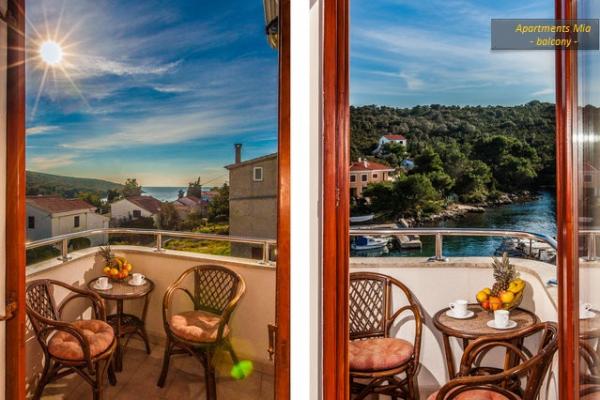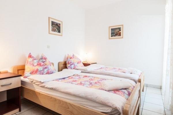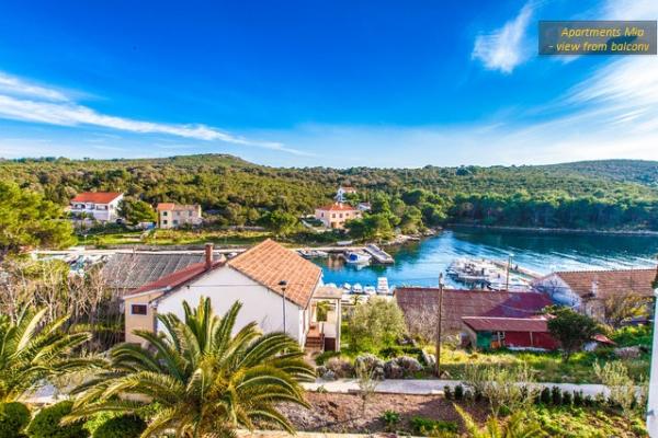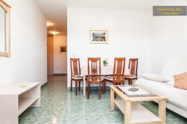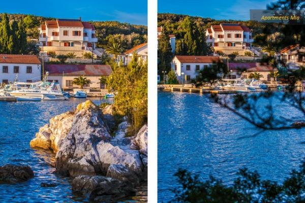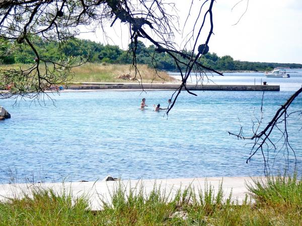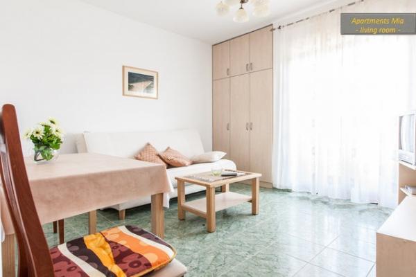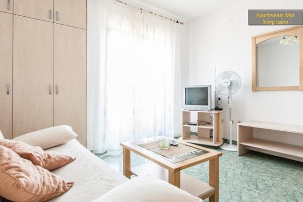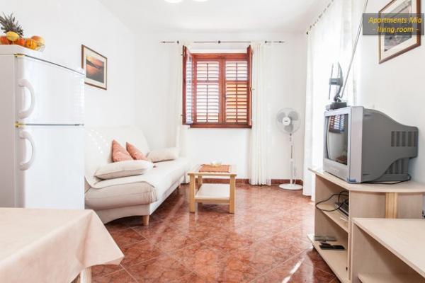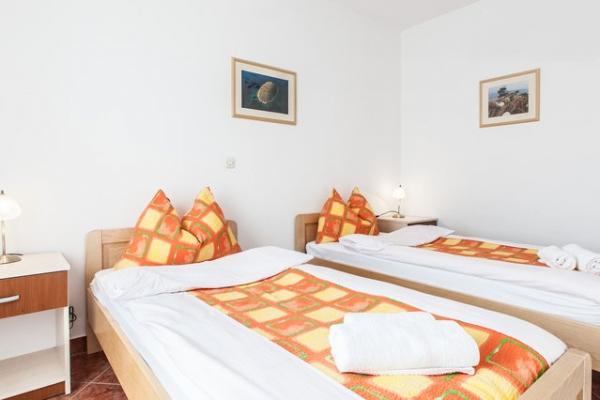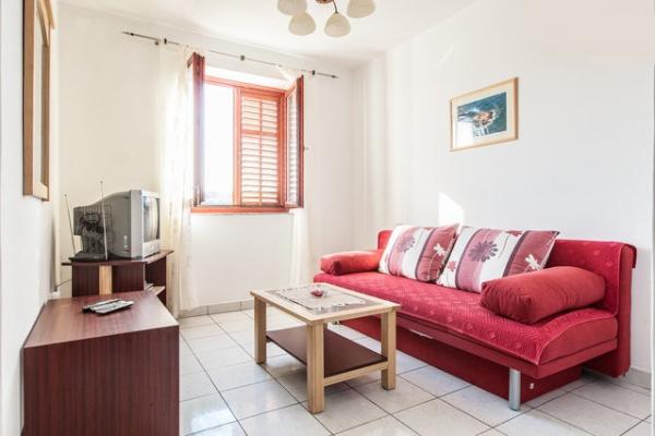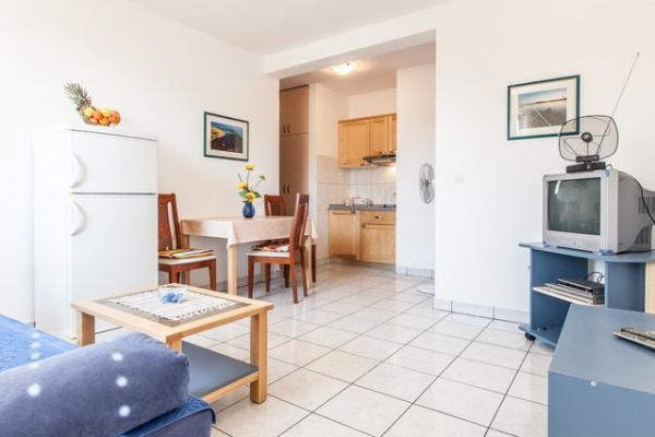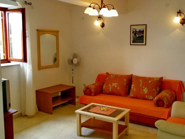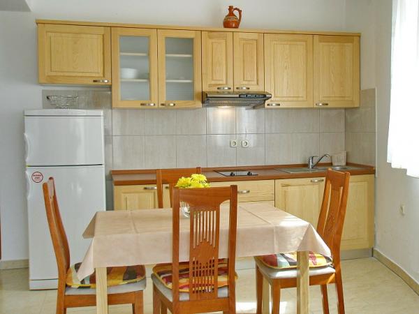 Pěkně zařízené apartmány, 2 2 Osoby, 40 m ², 50 m od moře, pokoje, klimatizace, koupelna a kuchyně, obývací pokoj, mikrovalalna trouba, satelitní TV, balkon, barbecue, parkoviště.
