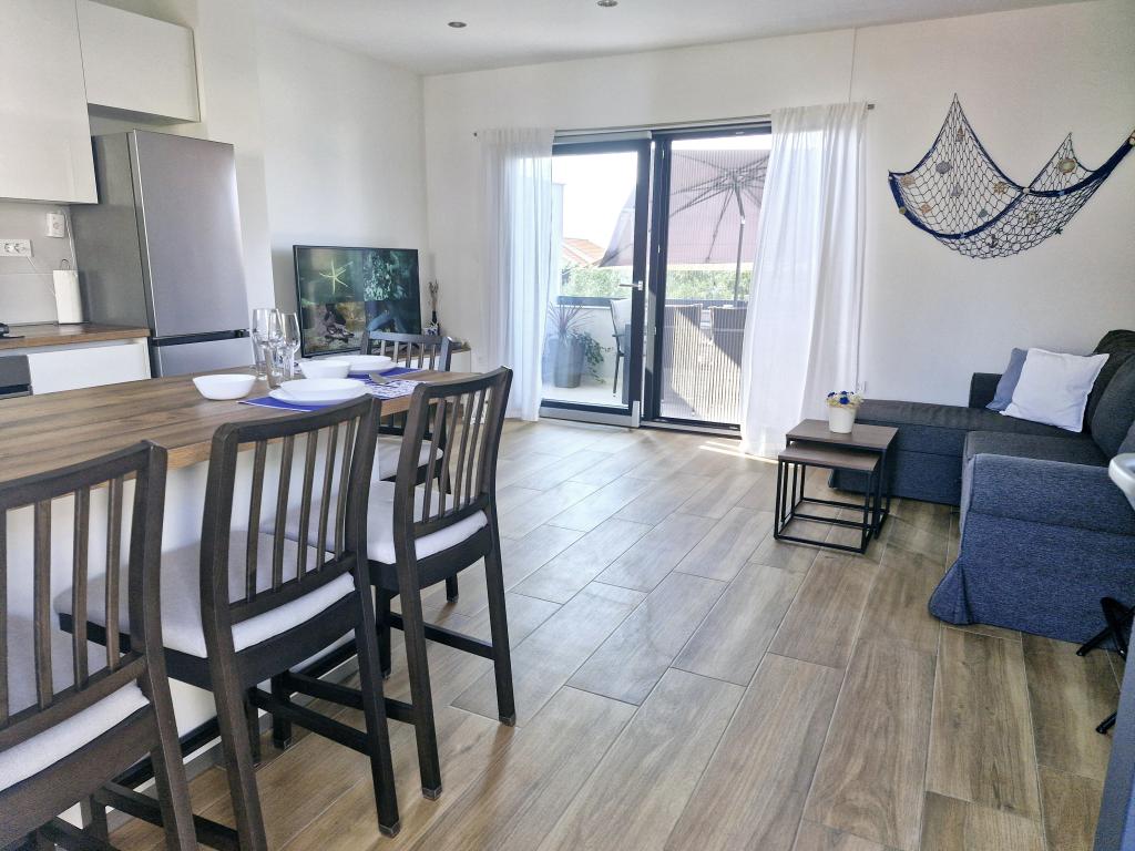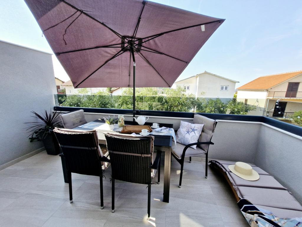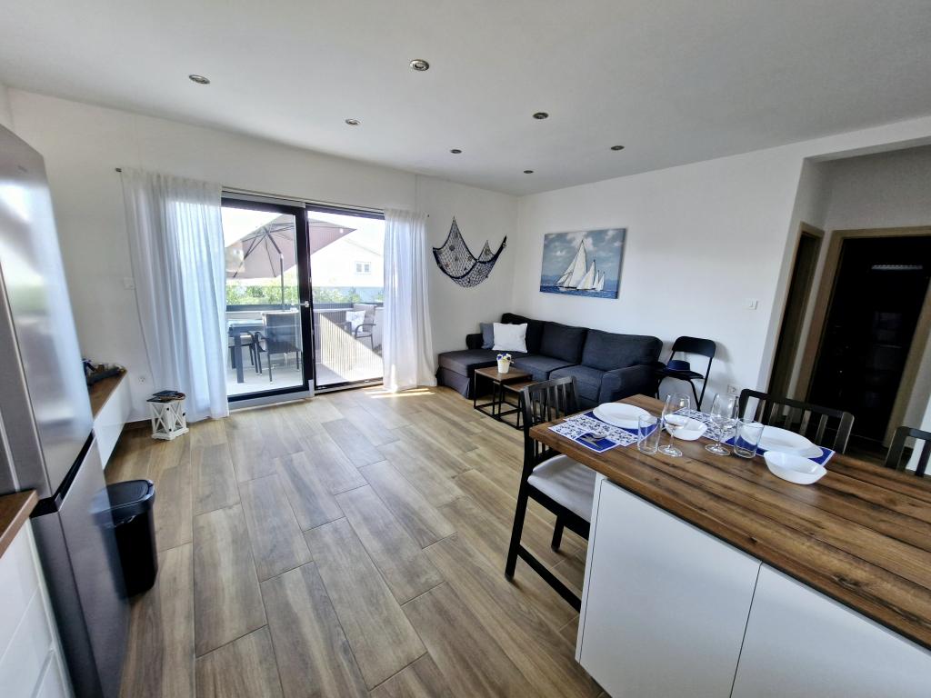 Byt se nachází na ostrově Murter ve městě Murter. S pevninou je spojen mostem, který plně zajišťuje dopravní komunikaci. Byt se nachází v nově zrekonstruovaném domě a jeho rozloha je 50 m2. V apartmánu se mohou ubytovat až 3 osoby (2+1). Jedná se o první patro domu v klidné ulici a jako takové nabízí klid a diskrétnost pro příjemnou dovolenou. Skládá se z kuchyně/jídelny/obývacího pokoje, ložnice, koupelny a balkonu s výhledem na moře. V ložnici je manželská postel (rozměry 160x200cm), v obývacím pokoji je pohodlná rozkládací pohovka. Je vybaven všemi domácími spotřebiči, 4k Android a satelitní televizí, internetem (Wi-Fi), klimatizací a parkovacím místem pod video dohledem. Během pobytu v našem apartmánu je k dispozici pračka, která udržuje vaše prádlo čisté. Objekt není určen pro kuřáky, ale má balkon, kde je kouření povoleno. Údržbě bytu věnujeme velkou pozornost.