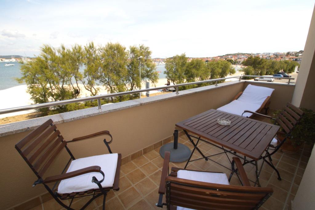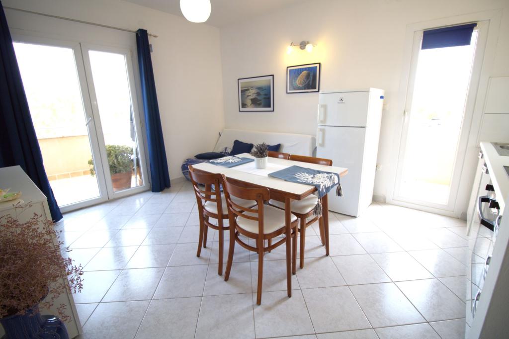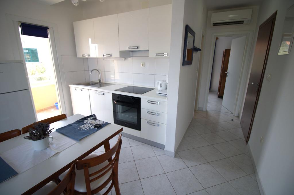 Nově zrekonstruovaný a plně zařízený apartmán, první řada k moři. Byt se skládá z jedné ložnice, kde mohou spát dva dospělí. Byt má obývací pokoj s gaučem, který lze využít jako přistýlku. Parkování je zdarma ve dvoře před bytem. Z bytu je výhled na moře a celou zátoku Murter. Nachází se ve výborné lokalitě, je max. 10 minut snadné chůze od písečné pláže Podvrška a pouhých 70 metrů od místní pláže Luka (kombinace betonové, oblázkové a písečné pláže. První obchod (Konzum) je od apartmánu vzdálen pouhých 100 metrů. Byt je vzdálen 10 - minutu snadné chůze od centra Murteru.