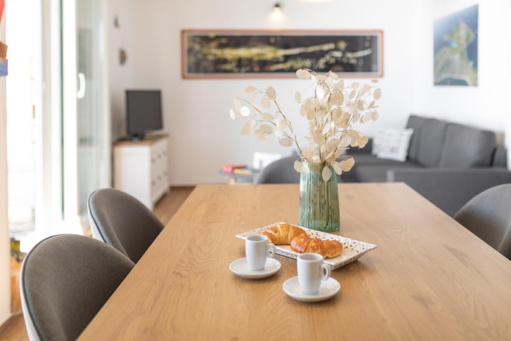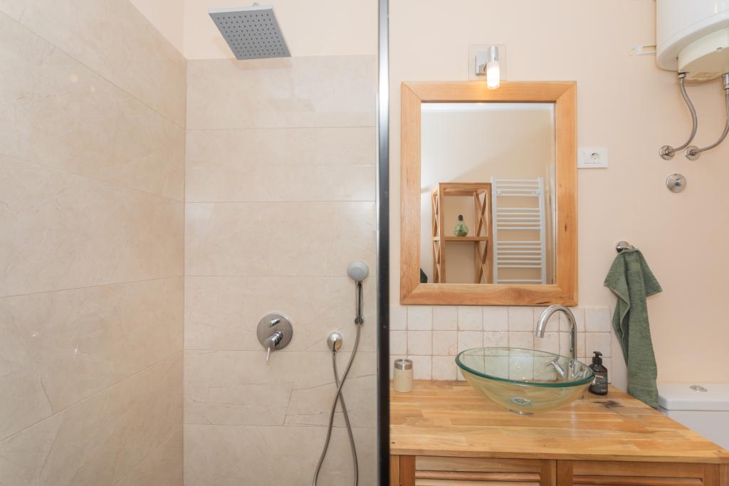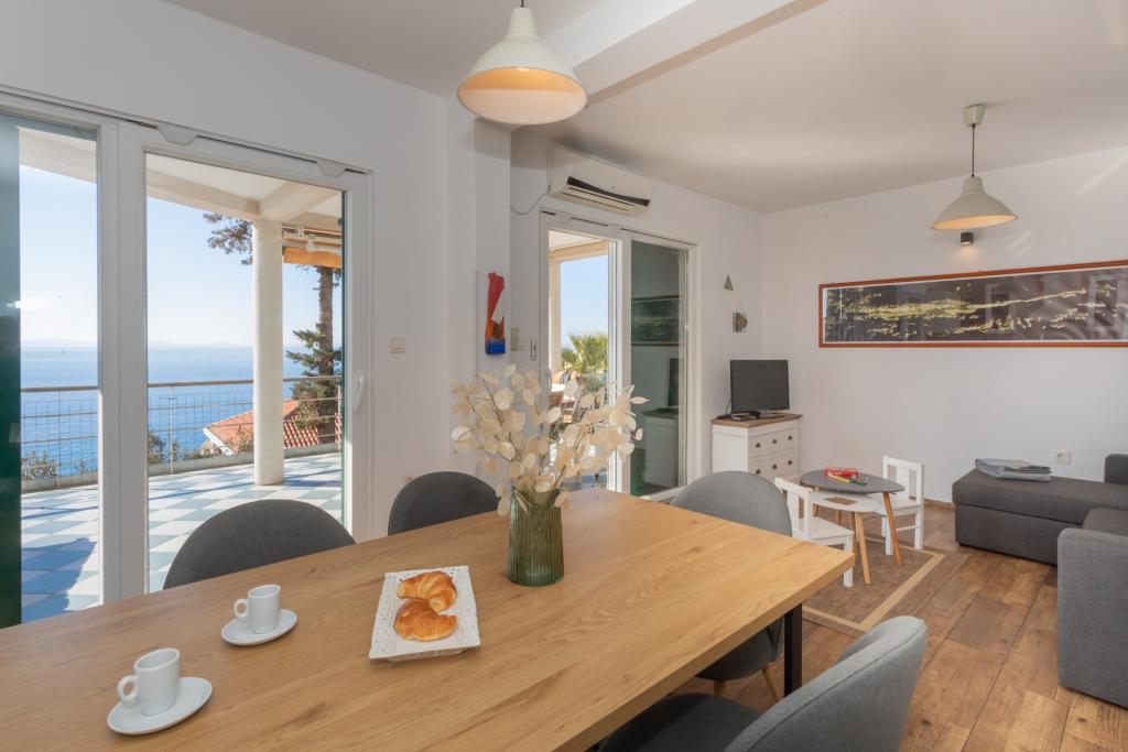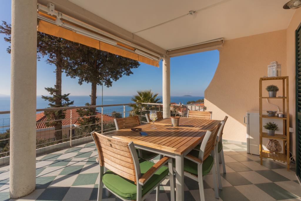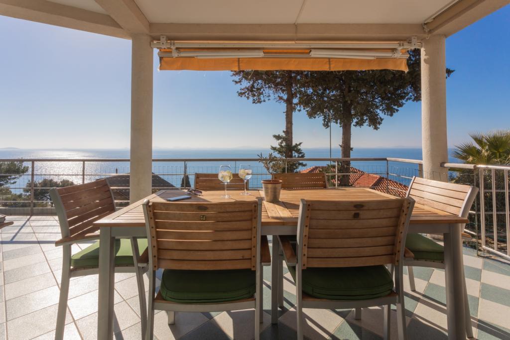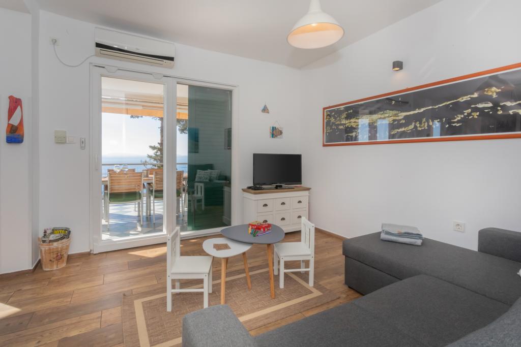 Moderně zařízený apartmán s krásným výhledem na moře, pouhých 40 m od moře, o rozloze 65 m2. Apartmán má dvě ložnice pro 4 osoby plus přistýlku pro jednu osobu, koupelnu, obývací pokoj, kuchyň s jídelnou a krásnou terasu o rozloze téměř 25 m2. Apartmán se nachází v prvním patře domu a je vybaven TV/sat, PS 4, wi-fi, klimatizací, topením, troubou, varnou konvicí, kávovarem, myčkou nádobí a pračkou. Apartmán má gril a letní kuchyň před vchodem. Parkování je zajištěno a je zahrnuto v ceně. Samotný apartmán se nachází ve velmi klidné části Murteru, 1100 m od centra města, 40 m od moře a skalnaté pláže, 300 m od písečné a oblázkové pláže Čigrađa a přibližně 800 m od písečné pláže Slanica.