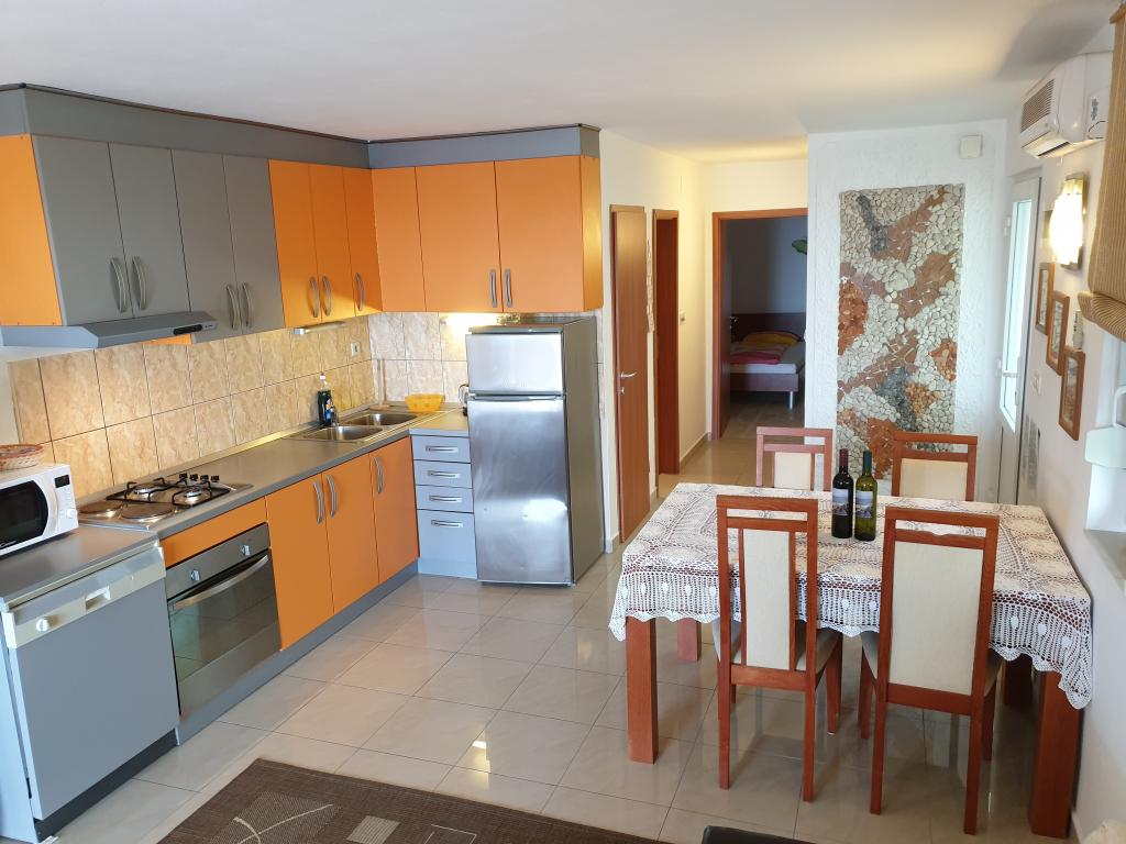 Pro vaši perfektní dovolenou vám nabízíme dva krásně zdobené a plně vybavené apartmány (klimatizace, wi-fi, satelitní TV zdarma) s jednou / dvěma ložnicemi, kuchyní, koupelnou, obývacím pokojem a samozřejmě nevyhnutelnou velkou terasou, která nabízí krásnou výhled na moře a souostroví Kornati. Zařízení se nachází v klidné části města, slepé uličce, a je proto ideální pro hosty, kteří hledají klid a pohodu, a pro rodiny s dětmi. Pro milovníky grilování je k dispozici velký venkovní gril. Ve vzdálenosti 20 metrů od domu, přes ulici, je oblázková a skalnatá pláž. Spasení z letního vedra najdete v přírodním stínu borovicového háje a občerstvení s výjimkou krásného čistého moře a pod sluneční venkovní sprchou. Do 10 minut chůze se nachází písečná pláž Slanica a pláž Čigrađa, které nabízejí další zařízení, jako jsou restaurace, aquapark, bary a další. Vítejte!