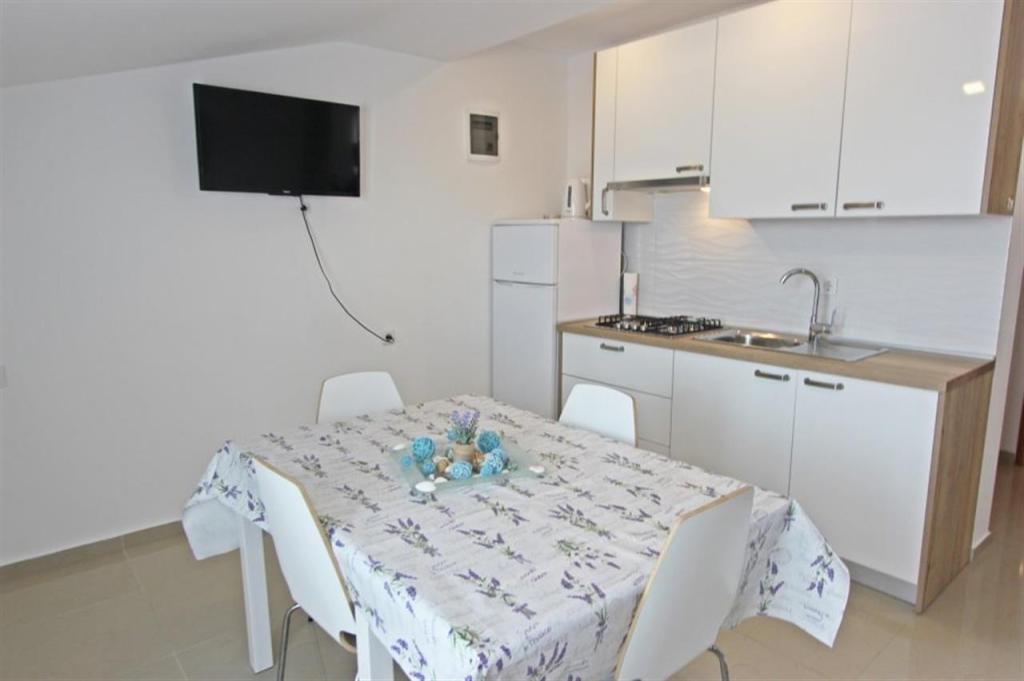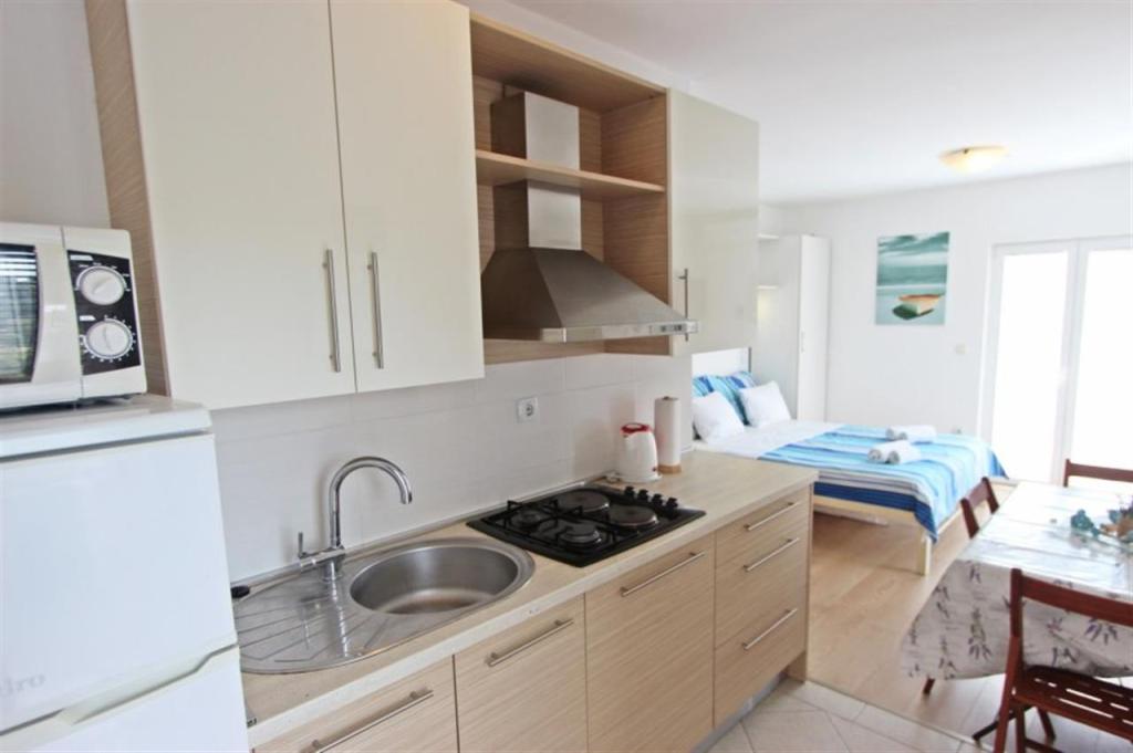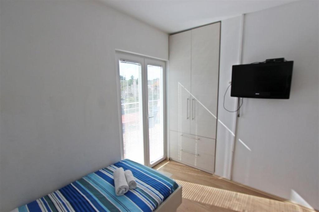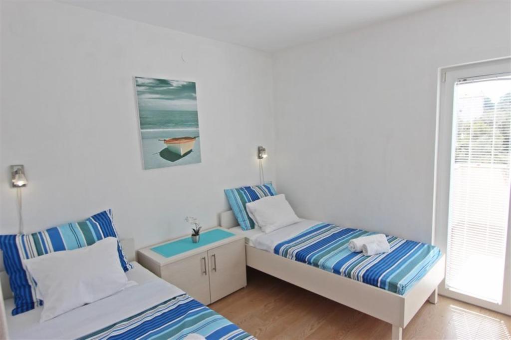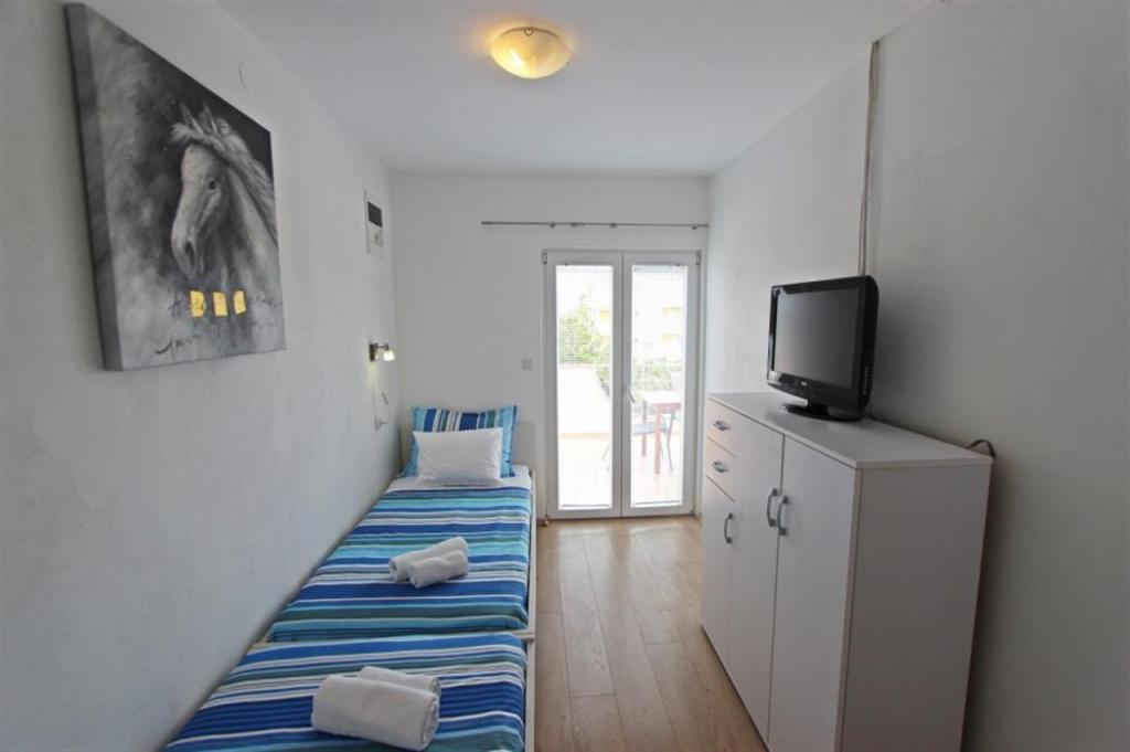 Apartmány pro čtyři osoby 2 + 2 nebo studio apartmány 2 + 1. Skládají se z ložnice (jedna manželská postel) a pokoje se dvěma samostatnými lůžky (rozměry 200x90) nebo ložnice a lůžka v obývacím pokoji, zatímco studiové apartmány se skládají z manželské postele s přistýlkou, kuchyně, koupelny a velké terasy. (15m2 / 18m2). V přízemí je také místnost s pračkou, kterou mohou hosté využívat. Apartmány jsou vybaveny TV a klimatizací, wi-fi, mikrovlnnou troubou a lednicí s mrazákem. Před apartmánem máme venkovní gril, který mohou hosté kdykoliv využít. Parkování je zajištěno a nachází se ve dvoře. Vzdálenost od první pláže a obchodů je 250 m, zatímco centrum je 1 km daleko