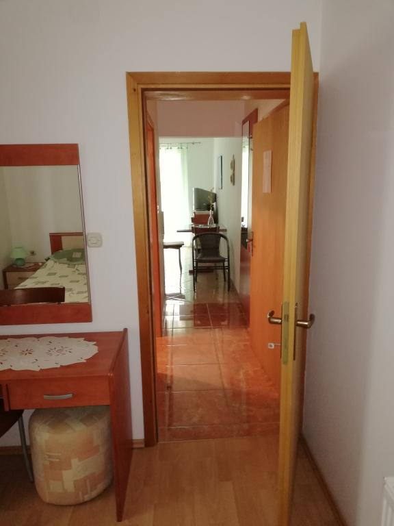 Apartmány se nacházejí v Murteru, v blízkosti přístavu Hramina. Apartmány jsou 40 m2 a 36 m2, plně vybavené. Byt o 40 m2 se skládá z ložnice, obývací pokoj, kuchyň, koupelna a krásnou terasu s výhledem na moře. Ložnice s manželskou postelí v obývacím pokoji je lůžko pro jednu dospělou osobu nebo dvě malé děti. Byt o 36 m2 se skládá z oddělené ložnice se samostatnou koupelnou a manželskou postelí, obývací pokoj s kuchyňským koutem a dalším sociálním zařízením. V obývacím pokoji je odvojeo přistýlka, který může spát dva lidé. První pláž je jen 150 m, a na ostrově nic víc. Hosté apartmánů ve dvoře muset použít ke grilování stolování.