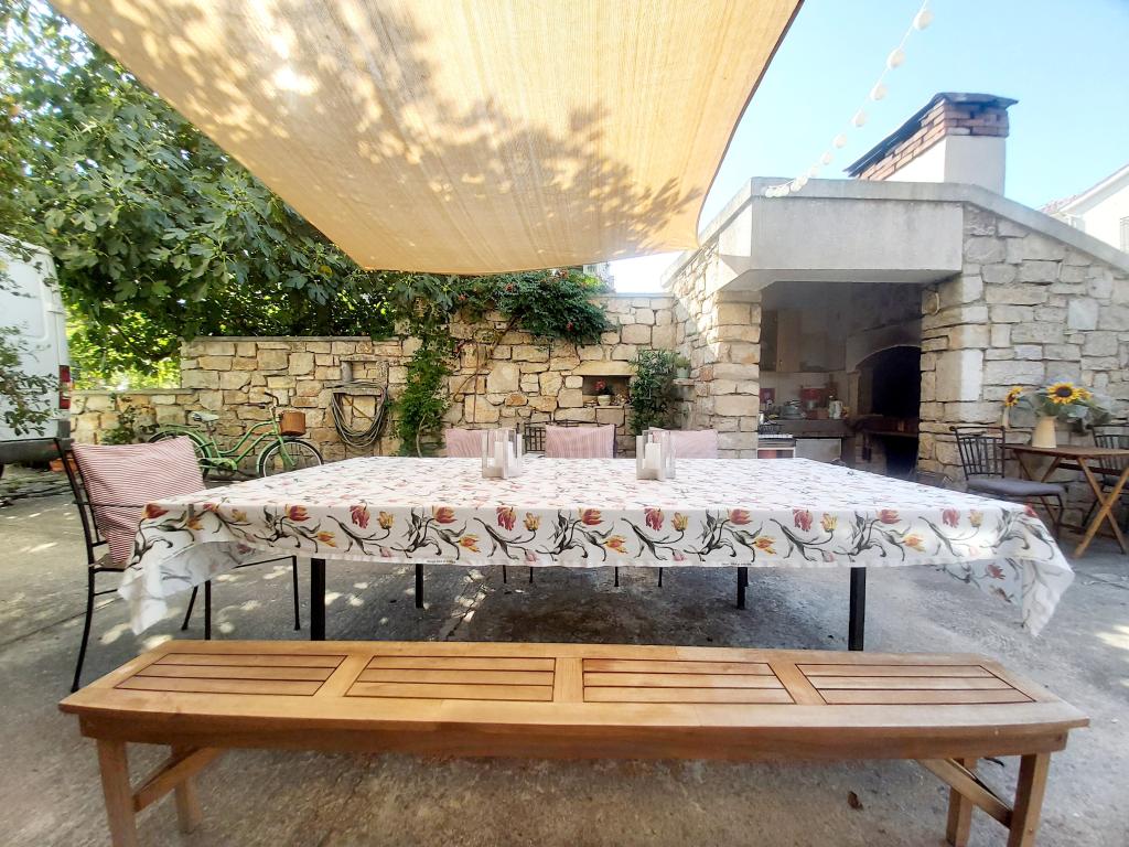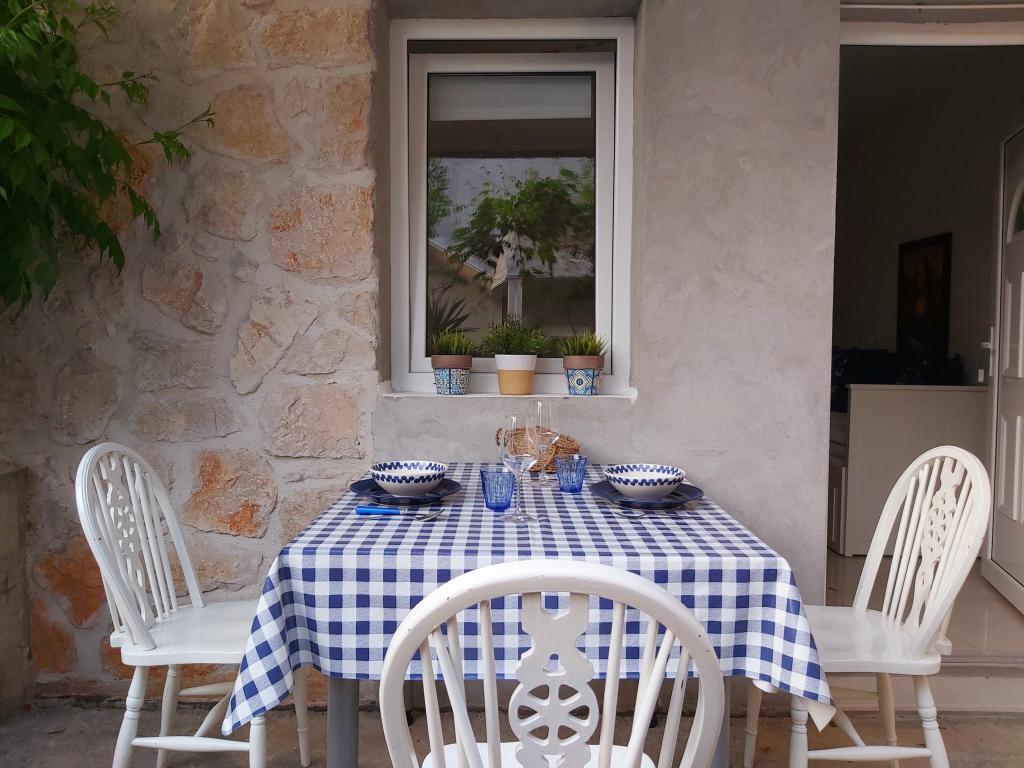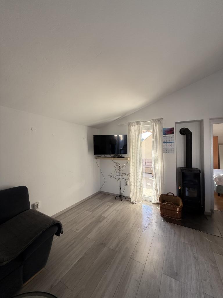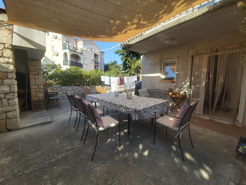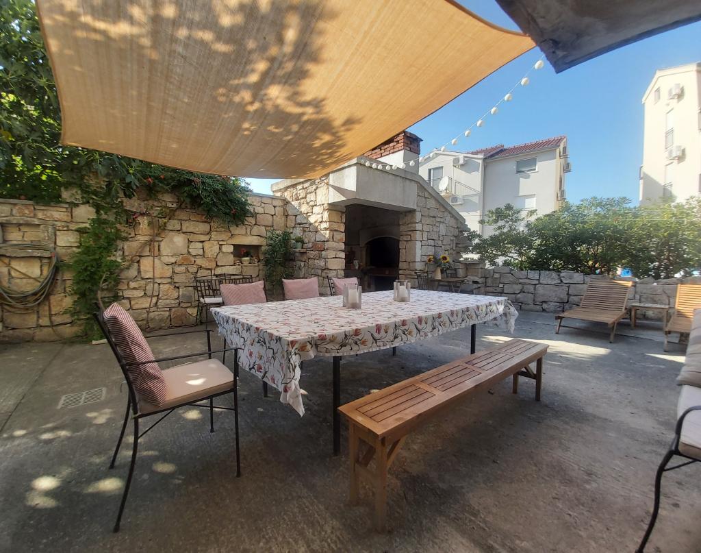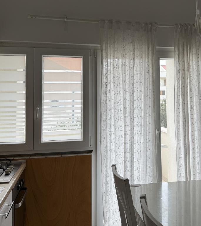 Studiový apartmán s terasou o rozloze 12 m2. Apartmán je určen pro 2 osoby. Velká manželská postel, plně vybavená kuchyň, jídelní stůl, koupelna. Terasa a jídelní stůl. Zajištěné parkovací místo před apartmánem pro jedno vozidlo. Blízko pláže. Apartmán se nachází 5 minut chůze od pláže Slanica a 7 minut chůze od centra Murteru.