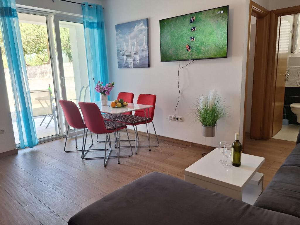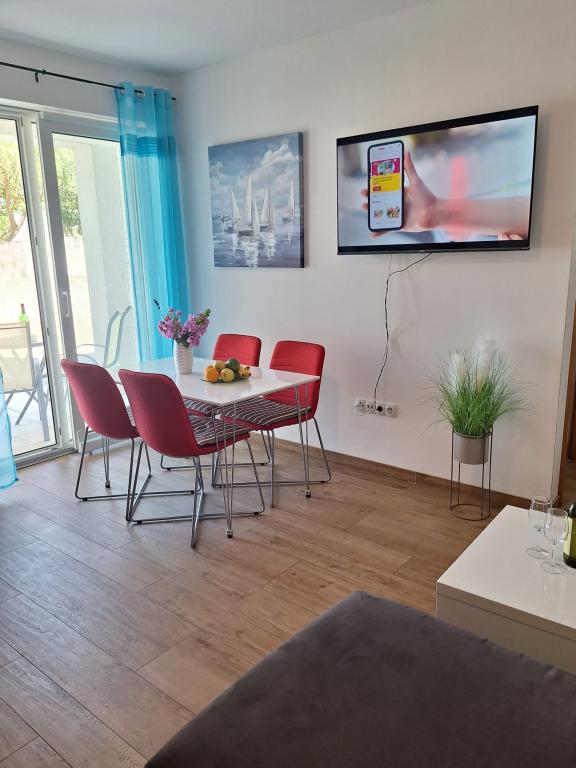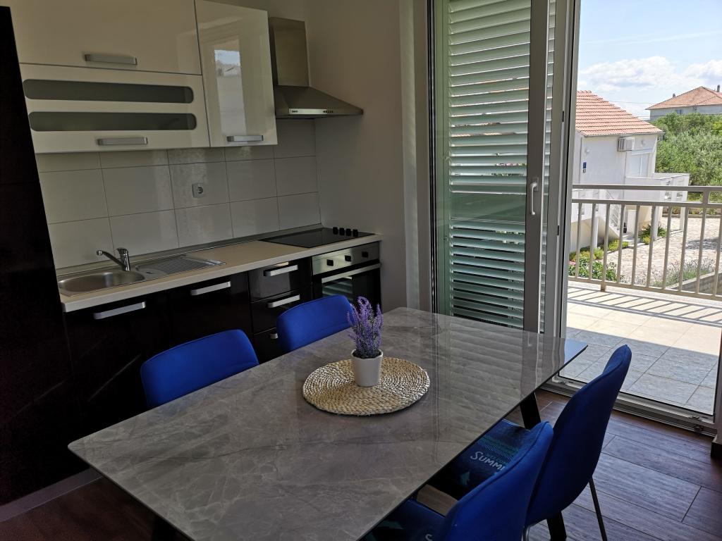Villa Tea se skládá ze šesti ubytovacích jednotek. Apartmány mají jednu nebo dvě ložnice, koupelnu, obývací pokoj s kuchyní a jídelnou a terasu s krásným výhledem na moře. Apartmány jsou plně vybavené. Každý apartmán má vlastní parkovací místo, bezplatné Wi-Fi a klimatizaci. Nejbližší písečná pláž Slanica je vzdálena pouhých pět minut od domu. Pokud se naopak rádi projdete po cestě, nad kterou visí borové větve a zpříjemní vám procházku, asi deset minut od Slanice je pláž Podvrška s nádhernou tyrkysovou barvou moře. V blízkosti je obchod a do centra města je to pouhých 15 minut. Pokud můžete, doporučujeme navštívit národní parky Kornati a řeka Krka, kaňon řeky Zrmanja a přírodní parky Vranské jezero a Telaščica.