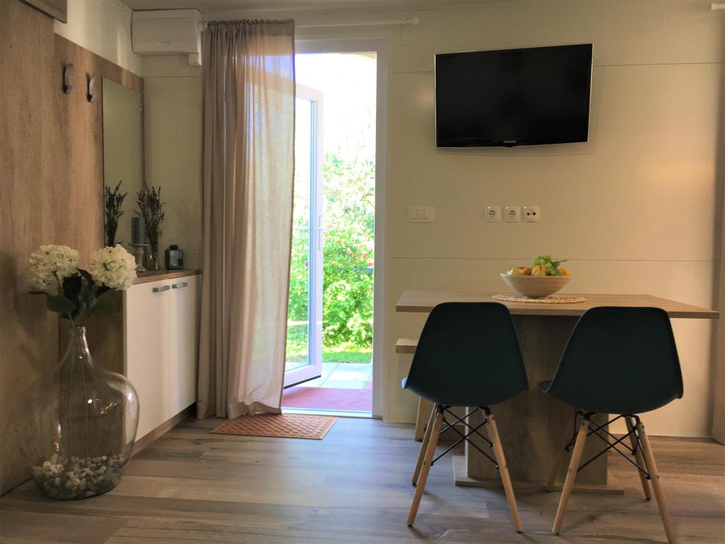Mobilní dům v zahradě plné olivovníků a zeleně, ideální pro rodiny a lidi, kteří mají rádi soukromí. Moderní a moderně vybavený dům, jen 400 metrů od hlavní, písečné pláže Slanice a 10 minut chůze od centra. V blízkosti restaurace, kavárny, obchody...