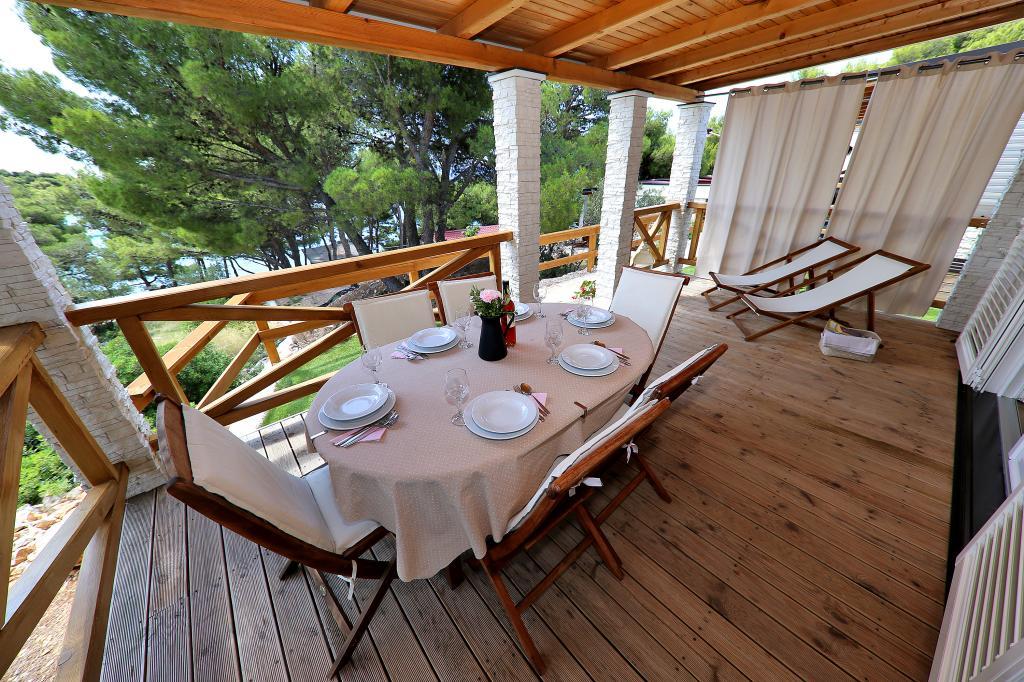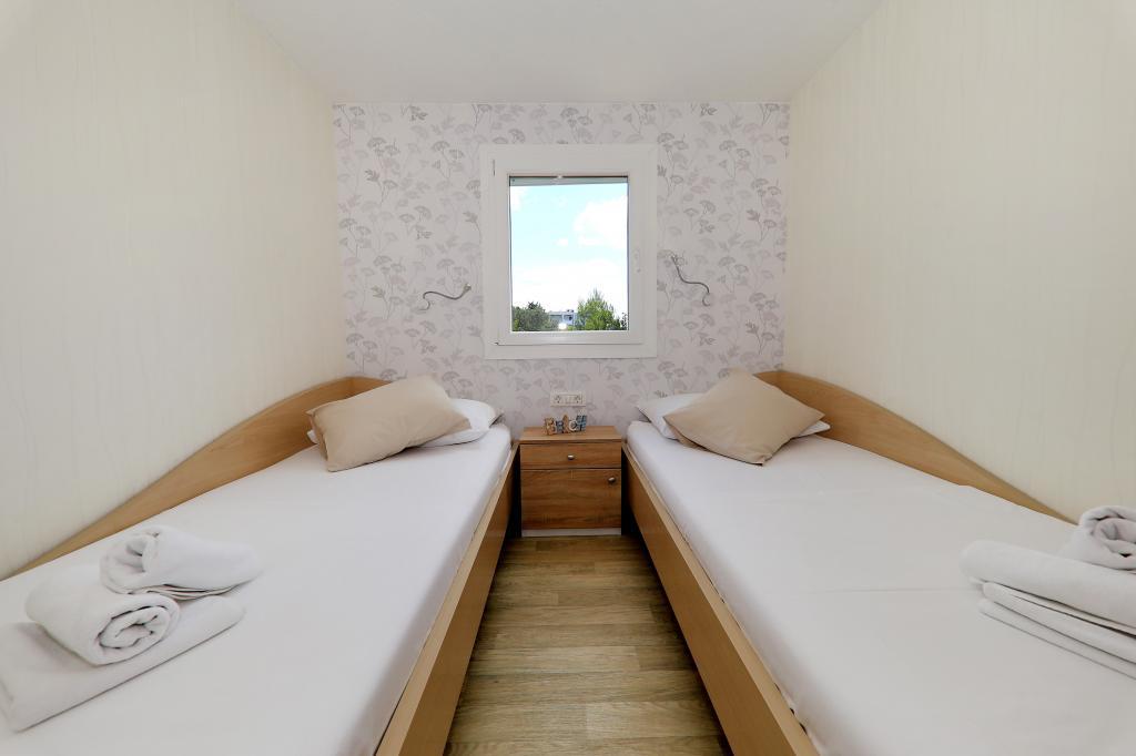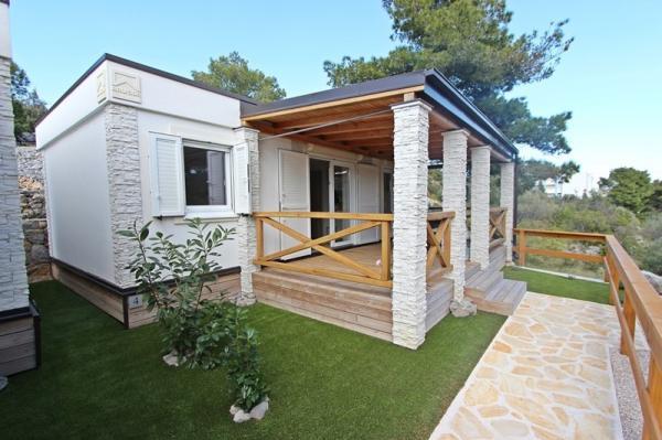 Mobilní domy v kempu Lostura se nacházejí v bezprostřední blízkosti jedné z nejkrásnějších pláží na Jadranu, Slanice!. Mobilní dům se nachází pouhých 30 m od moře a 200 m od písečné pláže Slanica. Dům má terasu o rozloze 40 m2 a velikosti 20 m2. Dům má dvě ložnice, jednu s manželskou postelí (160x200) a pokoj se dvěma samostatnými lůžky (80x200). V obývacím pokoji je rohová pohovka, kterou lze použít jako přistýlku pro jednoho dospělého nebo dvě malé děti. Kuchyň je plně vybavena všemi potřebnými spotřebiči (lednice s mrazákem, trouba, mikrovlnná trouba, myčka nádobí, varná konvice, kávovar). Koupelna se sprchou, pračkou, fénem, koupelnovými doplňky. V obývacím pokoji je TV se satelitním přijímačem, bezplatný internet, klimatizace pro chlazení a topení. Na terase je jídelní stůl se židlemi a lehátko pro opalování a užívání si krásného výhledu na Kornatské ostrovy a pláž Slanica. Parkovací místo se nachází v bezprostřední blízkosti domu.