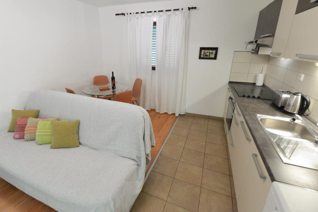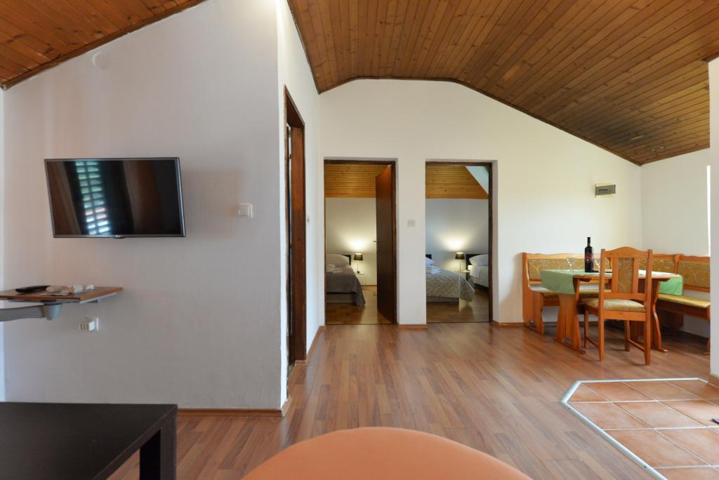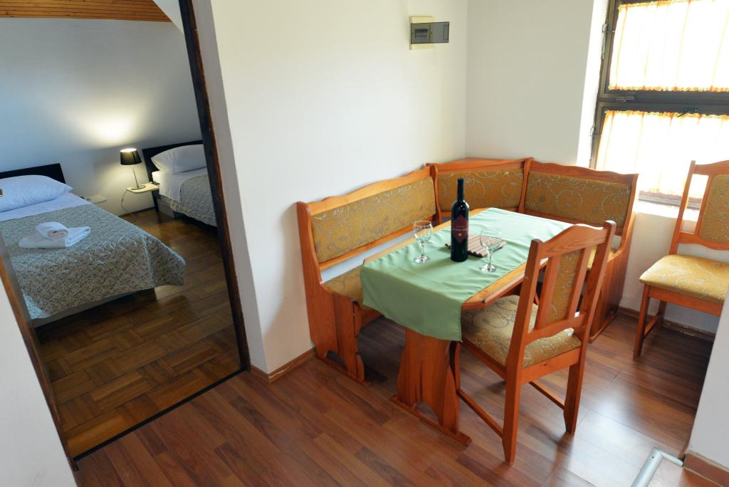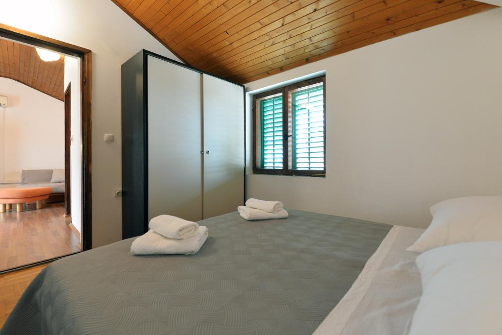 Apartmán pro 2+1 nebo 2+2 osoby se nachází ve staré části Murteru v autentickém dalmatském kamenném domě. Byt má jeden pokoj, kde se mohou vyspat 2 dospělí, v obývacím pokoji je gauč (přistýlka), který lze využít ke spaní, může spát 1 dospělý nebo dvě menší děti. Kuchyň je plně vybavená. V bytě je WiFi internet, klimatizace, myčka, mimo byt je k dispozici pračka ve skladu, kterou lze zdarma používat. Před apartmánem je velká terasa s grilem. Apartmán má bezplatné parkoviště. Byt se nachází ve staré části Murteru. Byt má dvě ložnice, kde se mohou ubytovat 4 dospělí. V obývacím pokoji je pohovka (přistýlka), kterou lze využít ke spaní. Byt je vybaven Wi-Fi internetem, klimatizací, myčkou, pračkou. K bytu náleží dvě volná parkovací místa. Terasu z obrázku lze využít.