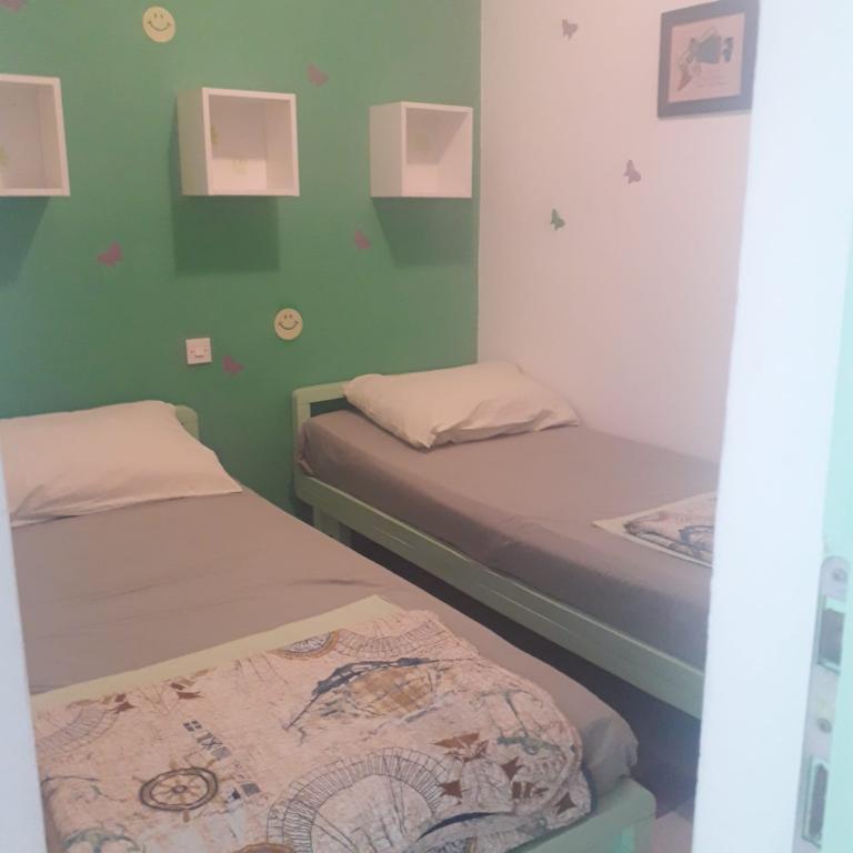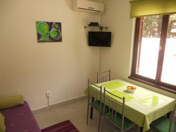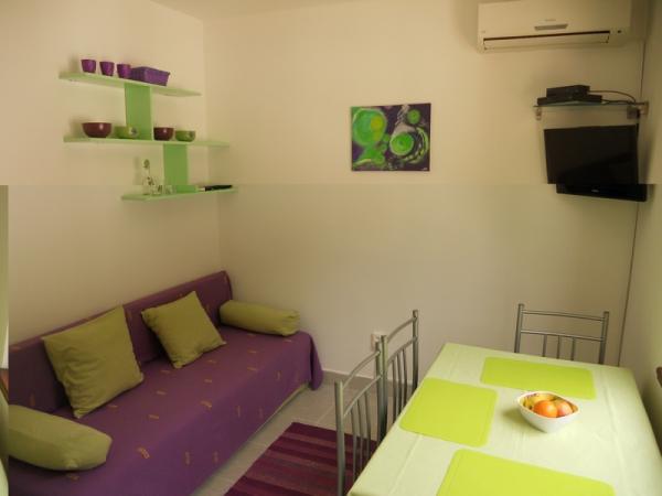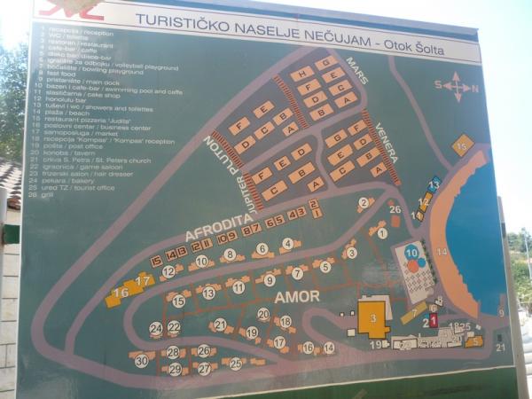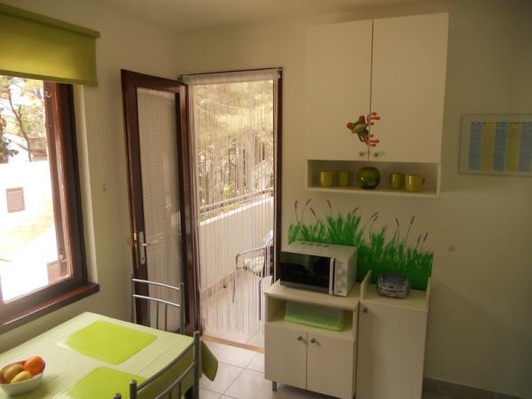 Zelený apartmán je pro 4 až 5 osob se dvěma ložnicemi, obývacím pokojem, kuchyní, koupelnou, terasou a balkonem. Apartmán má také balkon a terasu, kde si hosté mohou stolovat venku ve stínu. Terasy obou apartmánů jsou kryté. Oba apartmány mají soukromé parkoviště. Modrý apartmán je pro 4 osoby s jednou ložnicí, obývacím pokojem, kuchyní, koupelnou a terasou. Modrý apartmán má také myčku nádobí. Oba apartmány mají pračku a gril. Apartmány jsou moderní, nedávno zrekonstruované a stylově zařízené. Většina nábytku je nová a vyrobená speciálně pro každý apartmán. Pláž je vzdálená 200 m a lze se na ni dostat pěšky borovým lesem. V blízkosti není žádná rušná silnice. Obchod je vzdálený asi 50 m a nedaleká restaurace je 200 m od apartmánu. Z dalších zařízení na pláži je k dispozici diskotéka, několik kaváren a pekárna. Kromě Nečujamu doporučujeme na Šoltě navštívit Stomorsku, Maslinicu a četné skryté zátoky.
