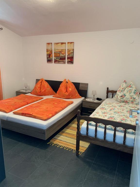 Apartmány v horním patře domu Obývací pokoj se 2 rozkládacími pohovkami 2 ložnice s manželskou postelí a postelí pro jednu osobu Sprcha a WC, pračka Kuchyň je plně zařízena Dům je 50m od pláže, pláž je z jemných oblázků , co se týče obchodu vše dostupné, pekárna, supermarket, pizzerie,... Nejbližší větší město je 20 km od Zadaru, Nin cca 4 km V případě zájmu nebo doplňujících dotazů nás prosím kontaktujte