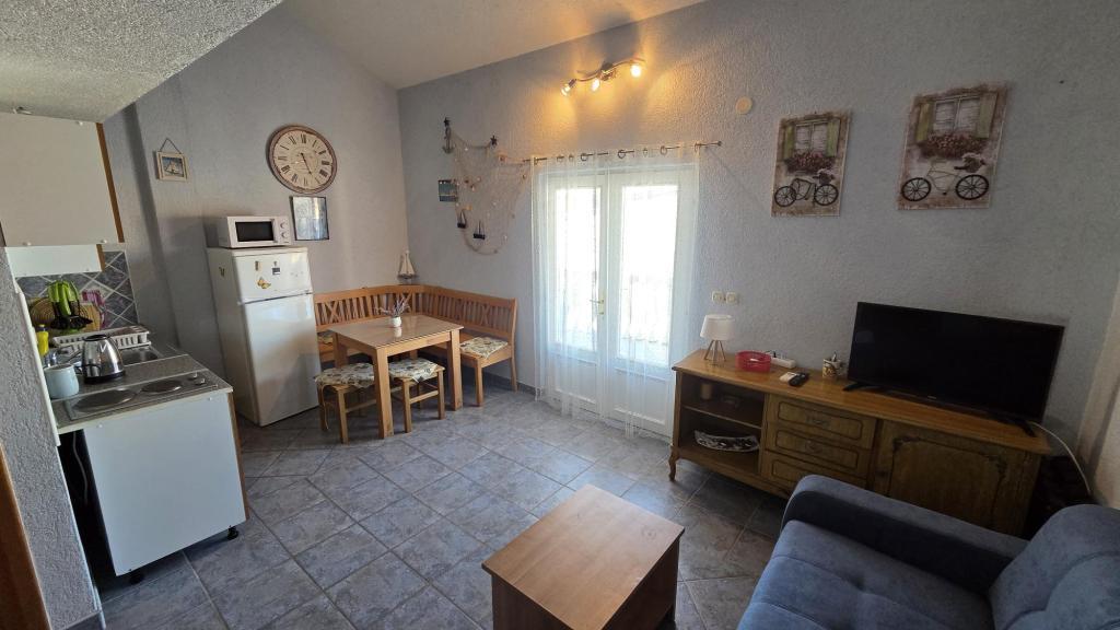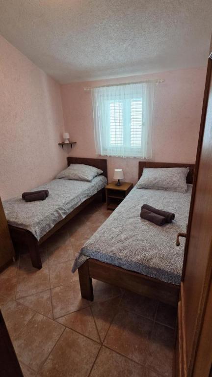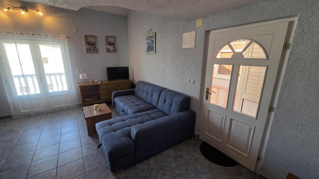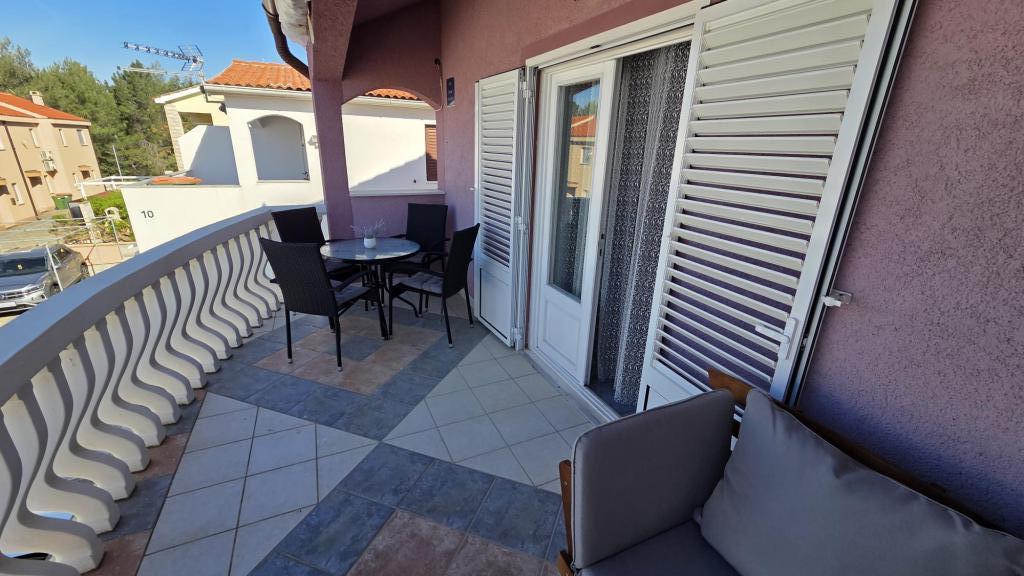 Apartmán se skládá ze dvou pokojů, jednoho s manželskou postelí, druhého se dvěma samostatnými lůžky, koupelny, obývacího pokoje s kuchyní a velké terasy. Parkování pro auto vedle apartmánu, gril, klimatizace, wifi. Vzdálenost od moře 5 minut chůze, 10 minut chůze do centra města a obchodů. Nedaleko se nachází krásný borový les. Klidné a tiché prostředí.