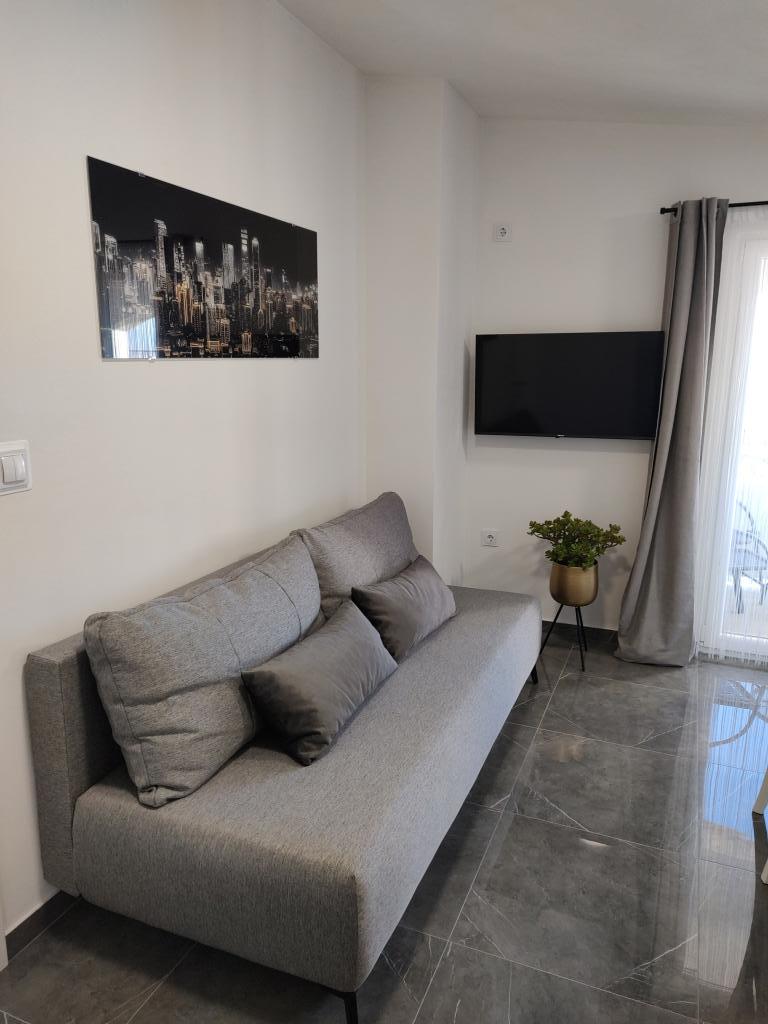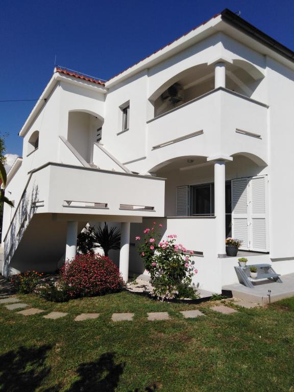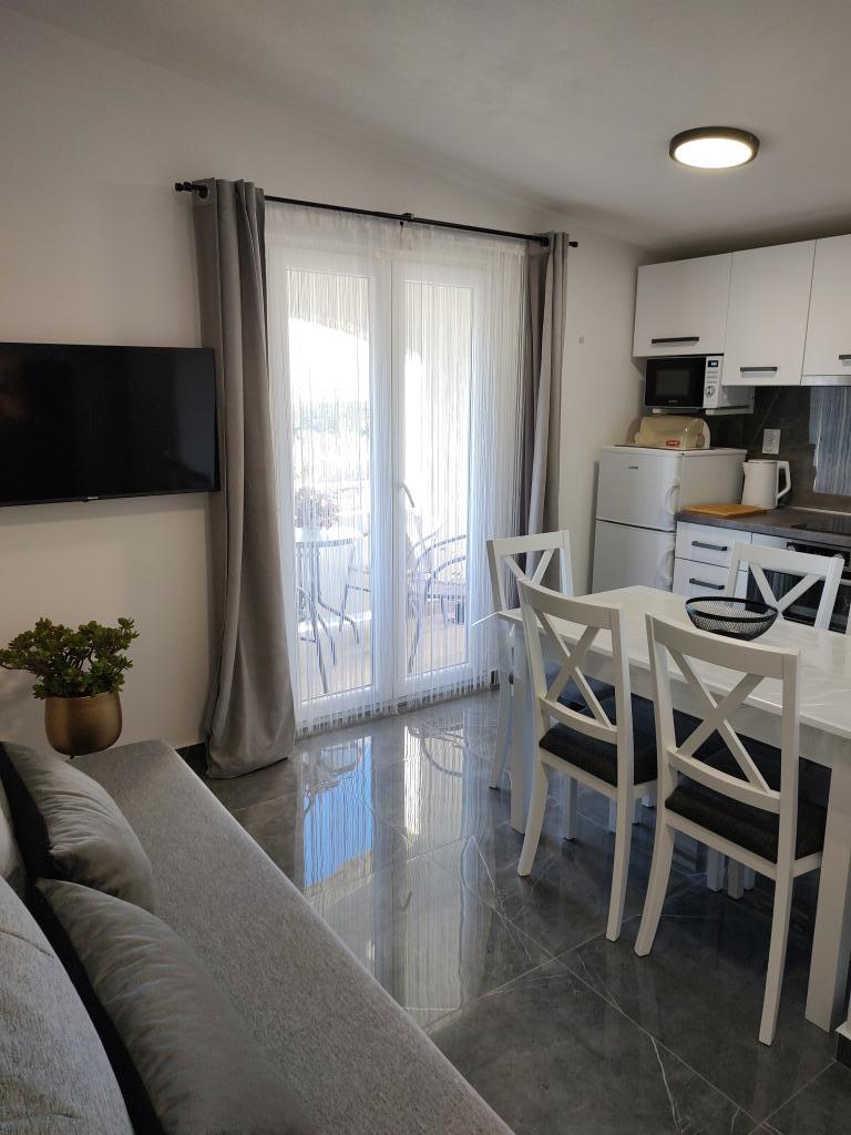 Studio, apartmán A2+2 a apartmán A4+2 se nacházejí v novostavbě. Jsou plně vybavené. Nacházejí se v klidné části obce, což vám zaručuje kvalitní dovolenou. Terasy ve všech apartmánech mají výhled na moře. Okna a balkonové dveře mají zabudované moskytiéry. Ve dvoře budovy se nachází velká zahrada s houpačkami pro děti. V blízkosti se nacházejí pláže pro každý vkus: písčitá, skalnatá, pláž u borového lesa, oblázková a betonová pláž se sprchami, šatnami, slunečníky, hřištěm na plážový volejbal, dětským hřištěm, posilovacími stroji, šlapadly.