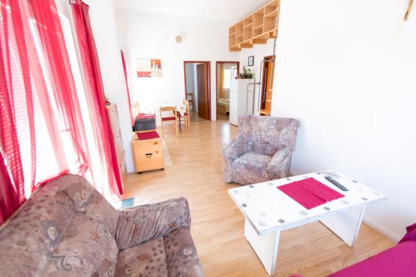 Byli jsme ubytováni v menším bytě, který je prostorný a má dvě ložnice. V bytě nás přivítala čisté a uklizené, slušně zařízené, s malými věcmi, které se po příjezdu osvěží. Všechno uvnitř je velmi funkční, obchod a pekařství jsou velmi blízko. Jedinou nevýhodou je, že balkony / terasy jsou velmi malé, takže v nich nejsou téměř žádné byty. Dům je v klidné ulici a na cestě na pláž se sotva setkáte s tím autem, které je skvělé pro bezstarostné sténání. Pláž, přístup na pláž a promenáda jsou plně přizpůsobeny rodinám s dětmi a neexistují žádné překážky pro jízdu kočárku na míle daleko. Na pláži je rockový hudební bar, který nenarušuje hosty na pláži. Na pláži je také cukrárna. Po 15-20 minut chůze se dostanete do Mula s restauracemi a pizzeriemi. Hostitelé se snaží udržovat atmosféru domácky a starat se o hosty jako o „své“.