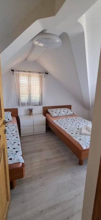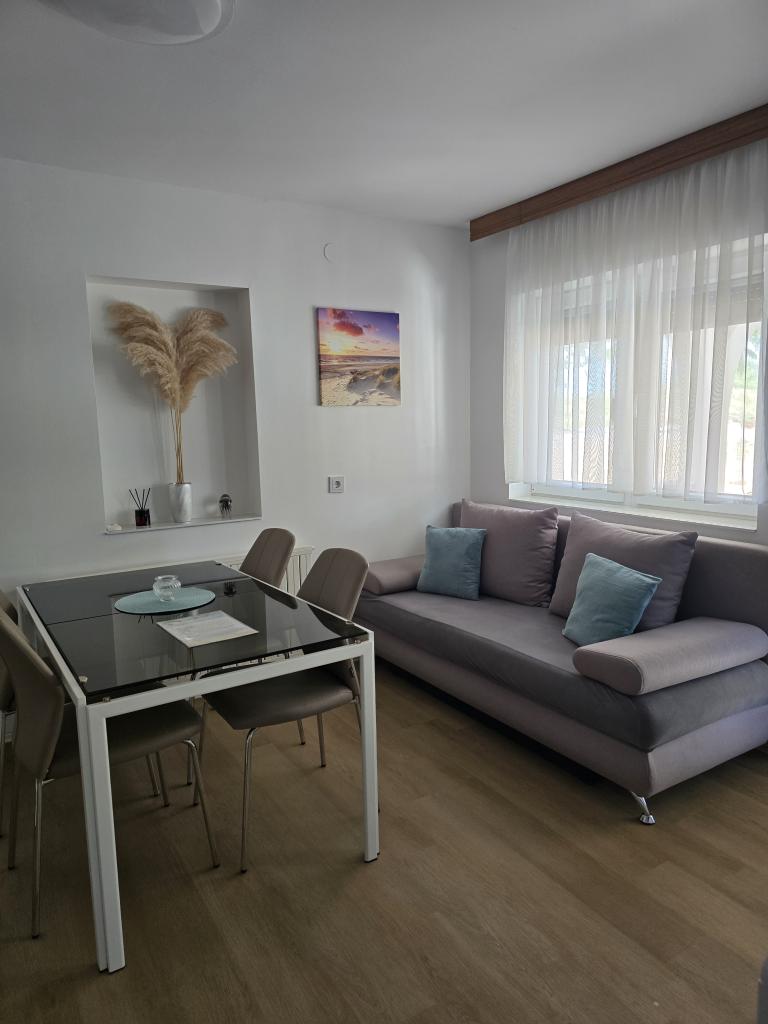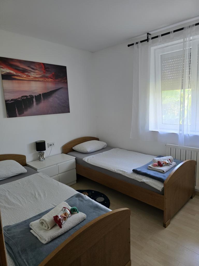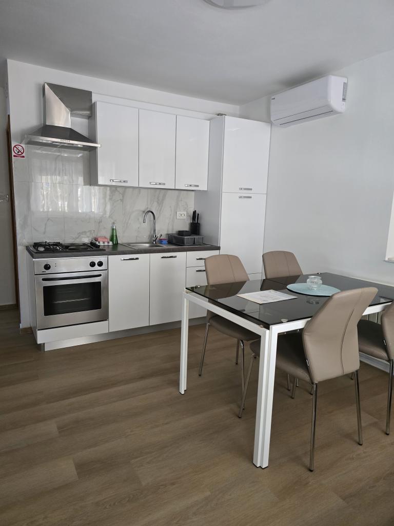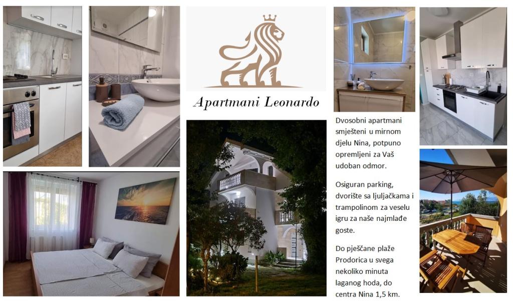 Apartmány Leonardo se nacházejí v rodinném domě s celkem 3 apartmány. Dům se nachází v klidné části města, nedaleko písečné pláže Prodorica, která je výbornou volbou pro rodiny s dětmi. Centrum města Nin je vzdálené 15 minut snadné chůze nebo 5 minut jízdy autem. Apartmány se skládají ze dvou ložnic s manželskou postelí a dvěma samostatnými lůžky, koupelny s vanou/sprchou, plně vybavené kuchyně a jídelny a venkovní zastřešené terasy. Hosté mají k dispozici: klimatizaci, TV, mikrovlnnou troubu, varnou konvici, pračku, fén, žehličku, dětskou postýlku a krmítko. Ke každému apartmánu je zajištěno parkování ve dvoře objektu.
