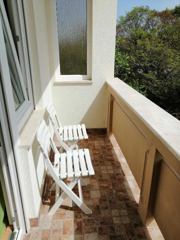 Rodinný dům se nachází v klidné části Ninu, na cestě k Královnině pláži - Ninskému blatu, odkud je to jen 5 minut chůze. Naše apartmány s jednou ložnicí jsou klimatizované a vybavené kuchyní, koupelnou, balkonem nebo terasou s krásným výhledem na moře a pláž. Na ostrov (centrum) se dostanete pěšky podél moře a veškerá další občanská vybavenost je v blízkosti (restaurace, obchody, pošta, banka...).