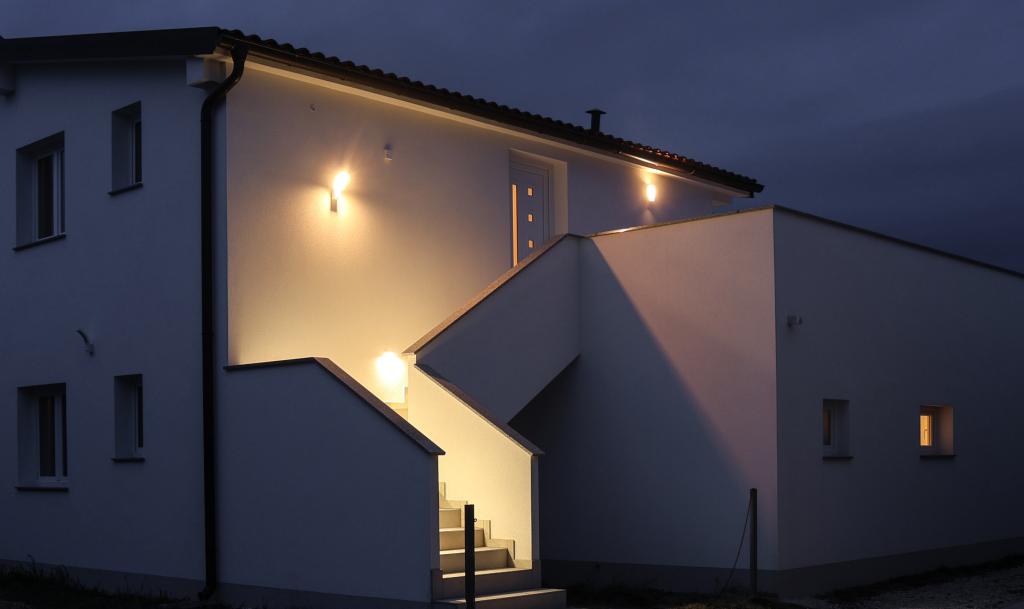 Prostorné, nově zrekonstruované a plně vybavené apartmány se nacházejí pouhých 15 metrů od moře. Apartmán 1 se nachází v přízemí (100 m² včetně terasy) a má soukromou zahradu, zatímco Apartmán 2 se nachází v horním patře (70 m² s balkonem o velikosti 50 m²), což je činí ideálními pro rodiny i skupiny přátel. Každý apartmán má dvě ložnice, obývací pokoj, kuchyň a koupelnu. Hosté mají k dispozici klimatizaci, TV a Wi-Fi. Součástí objektu je také soukromé parkoviště a venkovní sprcha. Zvláštním lákadlem jsou kouzelné západy slunce a nádherný výhled na pohoří Velebit.