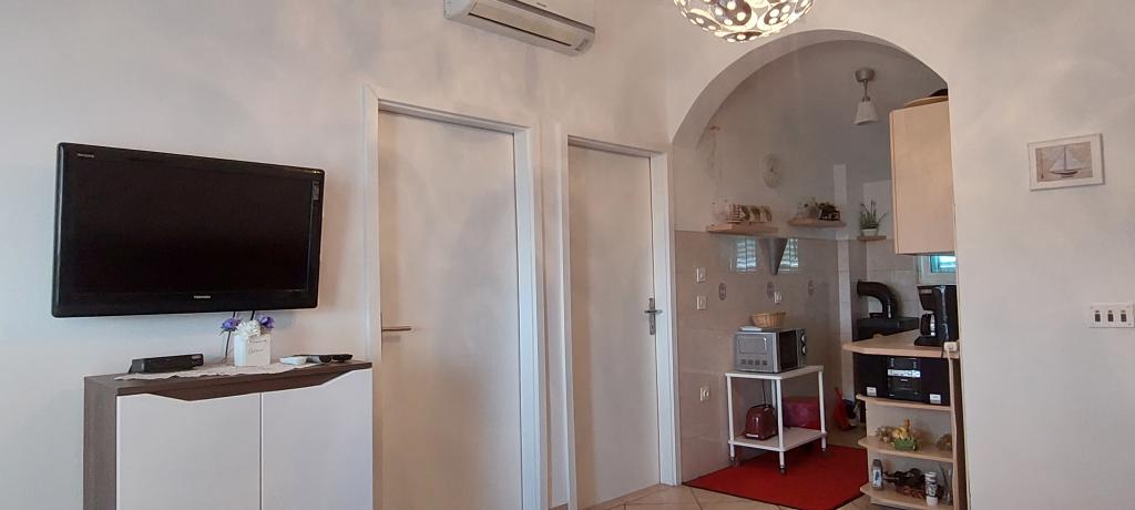 Byt je kompletně zařízený. To má dvě velké ložnice, koupelna, kuchyň propojená s velkým obývacím pokojem, terasa s výhledem na moře, klimatizace, internet (Wi-Fi). Parkování je ve dvoře. Mám gril, takže můžete mít grilování každý den. Nakupujte v naší ulici, v těsné blízkosti domu. Na pláži se nachází v blízkosti, 2-3 minut chůze. Na pláži jsou doškovými slunečníky a lehátka, které si lze pronajmout za den. Vzdálenost do centra Nina je nutné 3 minuty autem do města Zadar 15 minut jízdy autem. Plně zařízený byt se nachází v klidné části obce Vrsi-Zukve.