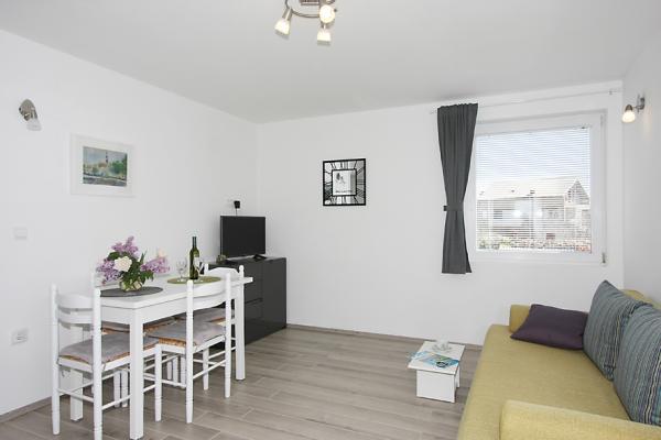 Apartmány se nacházejí ve staré části města Nin, na ostrůvku, 10 m od moře a nedaleko centra města a písečné pláže Ždrijac, která je díky své mělkosti ideální pro rodiny s malými dětmi. také známý pro svou školu kite-surfingu. Další písečná pláž zvaná Kraljičina plaža je vzdálená 2 km, pokud pojedete po silnici, a je známá svým léčivým bahnem. Všechny apartmány jsou nově zrekonstruované, moderní a dobře vybavené. Studio 1 má nádherný výhled na moře, ideální pro páry. Studio 2 a 3 pokoje. s nádherným výhledem na písečné pláže a pohoří Velebit. Mohou se v nich ubytovat až 3 dospělí nebo 2 dospělí + 1 dítě. Pokoj s manželskou postelí a pohovkou o rozměrech 120×200. Apartmán 3 a Apartmán 4 jsou větší, jsou určeny pro ubytování až 4 osob, sestávají z oddělené místnosti s manželskou postelí a obývacího pokoje s pohovkou o rozměru 160x200. Aplikace. 4 má také dvě lodžie s výhledem do zahrady a na moře. Všechny apartmány mají dobře vybavenou kuchyň a koupelnu a společnou prádelnu. Ložní prádlo a ručníky se mění pravidelně