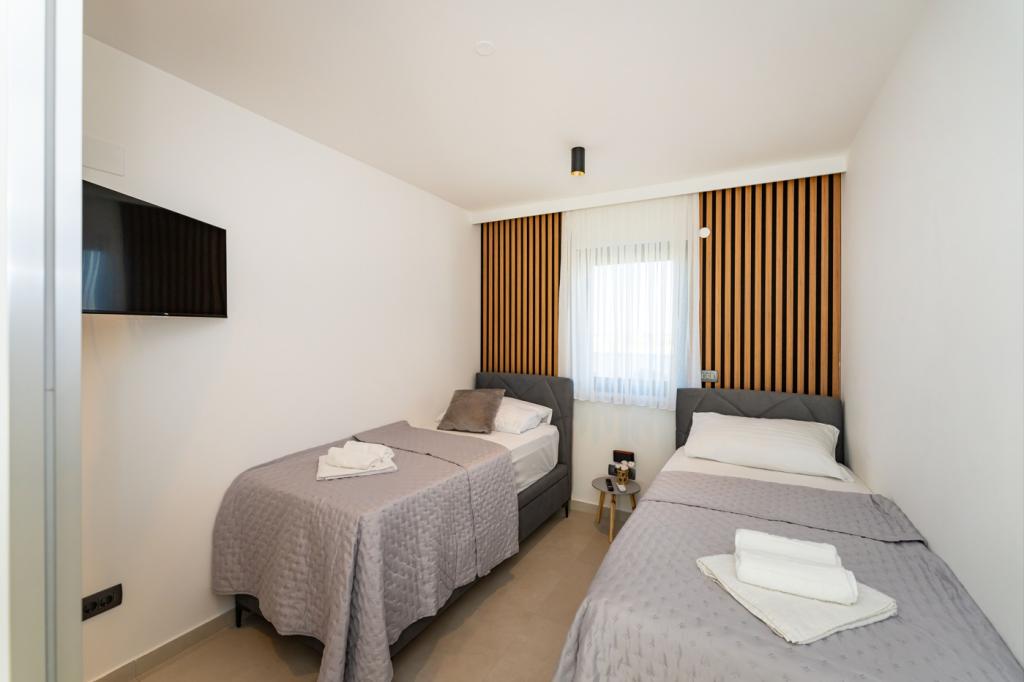 Vila LaMag, moderní nově postavená vila, se nachází v krásné a klidné vesničce Vrsi Zukve, která je vzdálená 20 km od Zadaru a 5 km od královského města Nin a asi 2,5 hodiny jízdy od Záhřebu. Pláž je vzdálená jen 3 minuty chůze, nejbližší restaurace je vzdálená pouhých 400 metrů a supermarket je vzdálený necelý kilometr. Prozkoumejte krásné písečné pláže Nina a Ljubača (10 minut jízdy) nebo navštivte nedaleké ostrovy Pag a Vir, které jsou propojeny mostem. Historické kouzlo starého města Zadaru s úzkými uličkami a kulturními skvosty je vzdálené pouhých 25 minut jízdy. Díky tomu je váš apartmán ideální základnou pro objevování krás tohoto úžasného přímořského regionu.