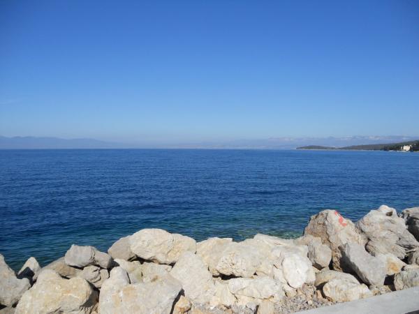 Byli jsme podruhé s Julijou a Milošem a můžete je jen doporučit. Oba jsou velmi pohostinní a srdečně bylo to opět velmi relaxační. Byt byl ve velmi čistém a dobře udržovaném stavu, abychom se mohli bez prodlení pohybovat. Za pár minut jsme se dostali k obchodu s potravinami a prádelně a kousek dál jsme byli u moře. Protože máme rádi běh, měli jsme na tratích kolem Njivic do Malinsky dost možností. Města Njivice a Malinska se již probudila z hibernace a nabídla širokou škálu restaurací a kaváren a všechny další obchody se otevřely. Pěšky a autem jsme prozkoumali ostrov a narazili na celou řadu atrakcí.