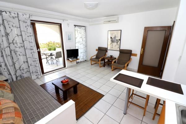 Plně zařízené a vybavené apartmány s velkými terasami v přízemí rodinného domu v Njivicích. Budova se nachází v klidné lokalitě v samém centru, druhá řada k moři a přístavu, parkování před budovou a vzdálenost k moři a veškeré občanské vybavenosti je 50-100 m.