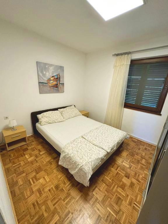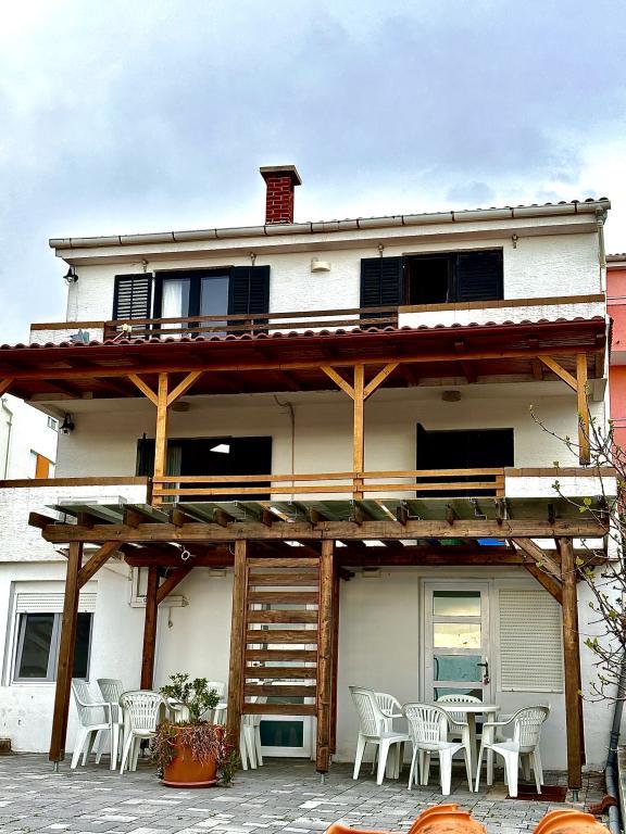 Úhledně zařízený byt se třemi ložnicemi a přistýlkou v obývacím pokoji. Ve všech třech ložnicích je manželská postel a šatní skříň na uložení oblečení. Velký obývací pokoj spojený s kuchyní. Byt má velkou terasu s výhledem na moře. S apartmánem je možné využít gril. Pro hosty je zajištěno parkovací místo ve dvoře a v bezprostřední blízkosti apartmánu.