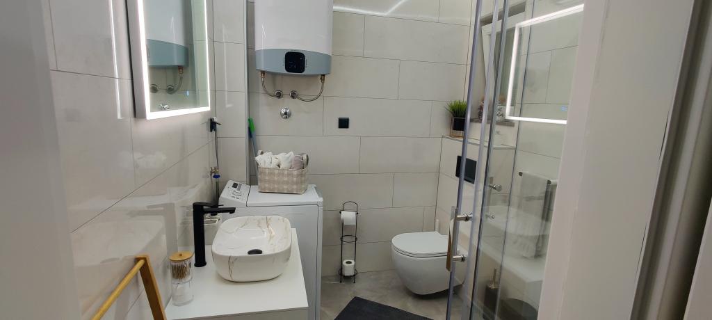 Nově zařízený apartmán v Novalji na ostrově Pag. Ostrov je spojen mostem. Nachází se v 1. patře bytového domu. K bytu náleží parkovací stání. Apartmán je vybaven klimatizací, WiFi zdarma, kávovarem Dolce Gusto, varnou konvicí, trezorem.