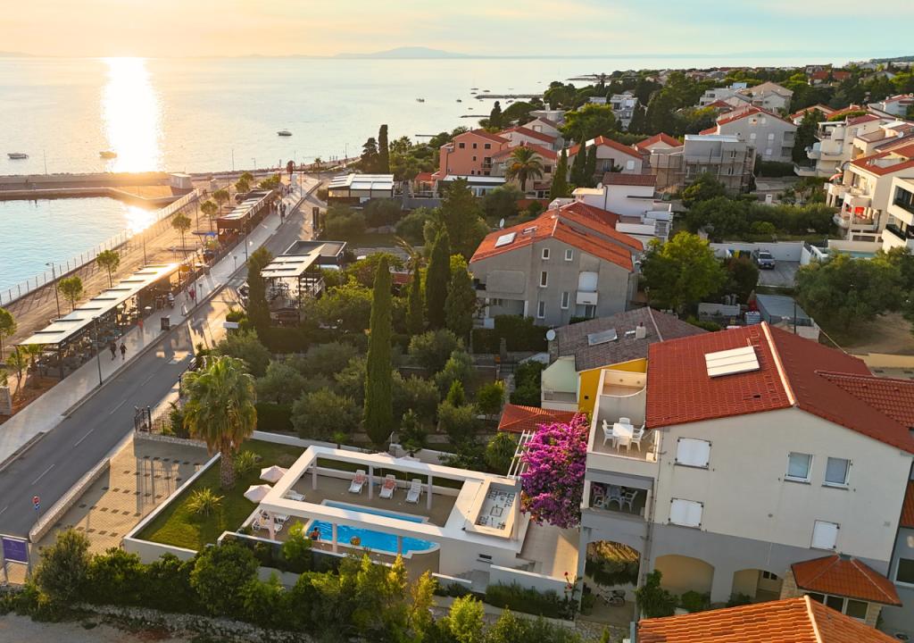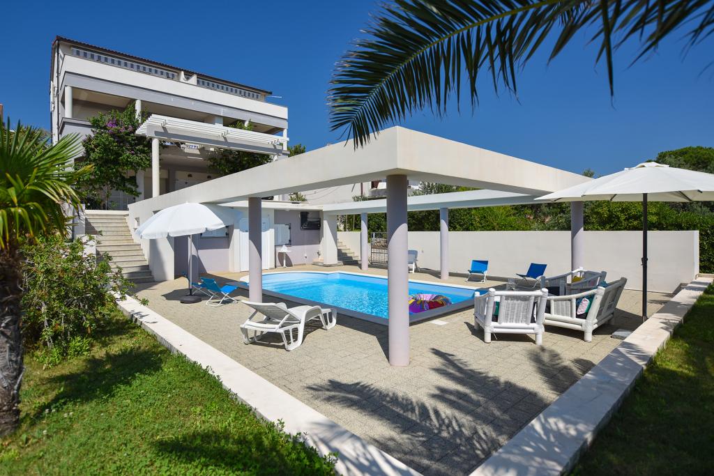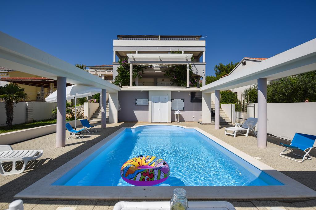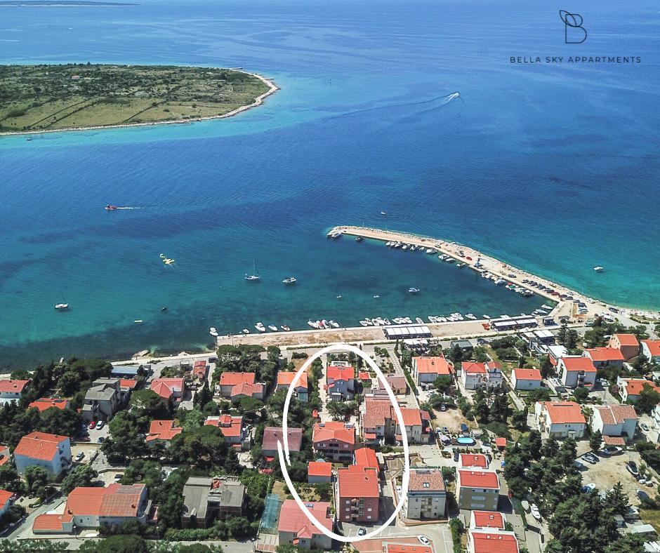 Apartmány Bella Sky se nacházejí nedaleko od centra Novalje a skládají se z 5 domů s celkem 29 apartmány. První dům se nachází přímo u moře, zatímco ostatní domy jsou v řadě za prvním domem. Apartmány mají kapacitu pro 2-6 osob, jsou standardně vybaveny, s výhledem na moře, parkováním zdarma, bazénem a prostorem pro socializaci a grilování ve dvoře. V blízkosti bytu je mnoho restaurací a kaváren, stejně jako pláže s mnoha doplňkovými aktivitami.