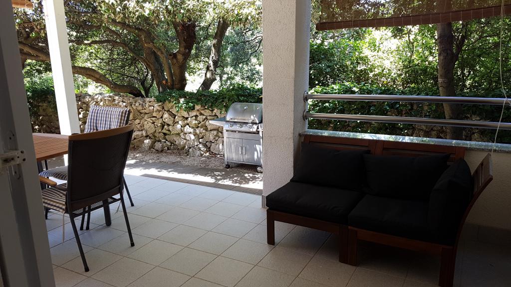 Apartmány se nacházejí ve velmi klidné části Novalja (Gaj), v blízkosti pláže. Dva různé pláže jsou jen půl minuty chůze od hotelu. Jedním z nich je betonová a ostatní vnější štěrku a písku ve vodě, který je vhodný pro děti. Apartmány jsou obklopeny zelení a nádvoří a parkoviště je zajištěno na velkém parkovišti. Od apartmánů do města Novalja je možné projít zdobené pěšinu podél pobřeží. Naše nabídka zahrnuje pronájem dvou apartmánů, které jsou vybaveny veškerým potřebným vybavením. Oba apartmány mají terasu, bezdrátový internet, sat.TV, rádio, klimatizace, je k dispozici atd. prádlo. Domácí zvířata jsou povolena předchozího oznámení.